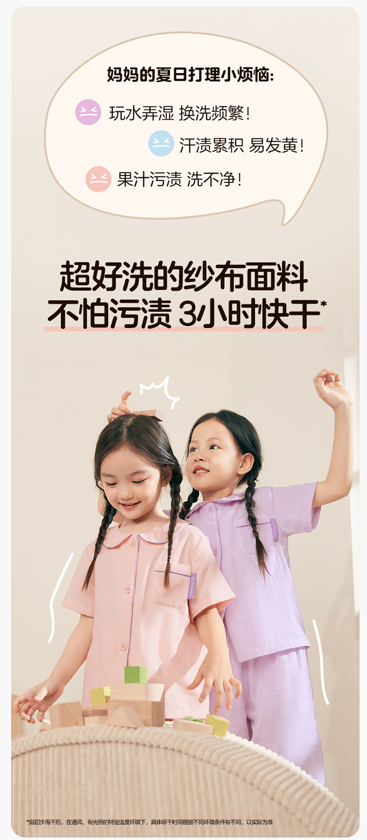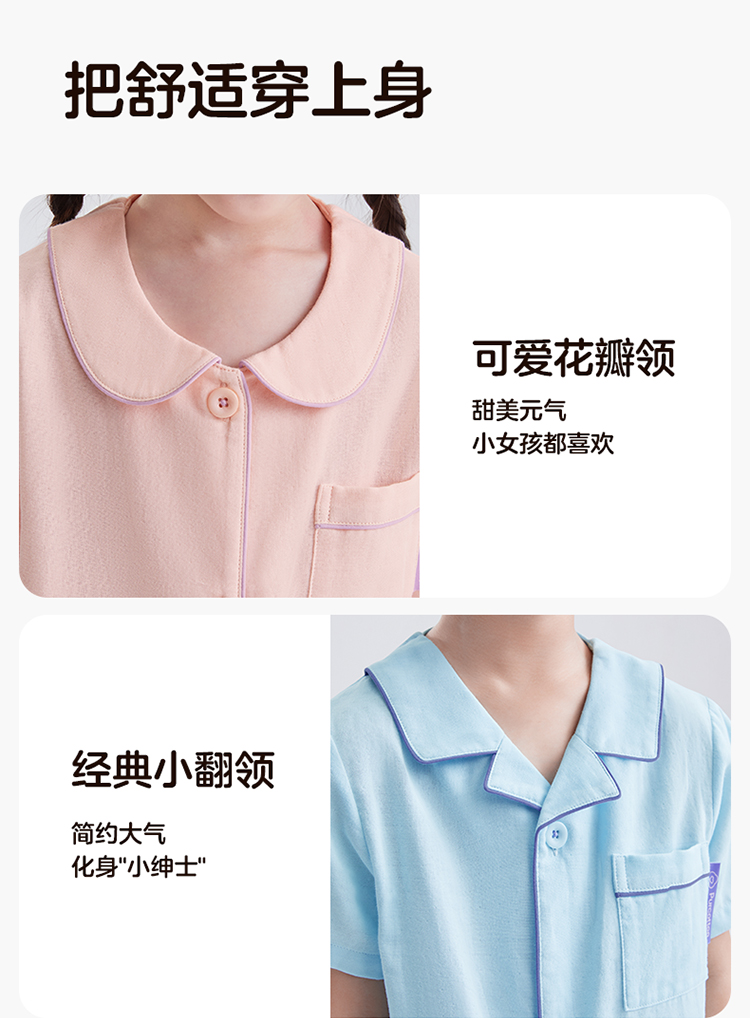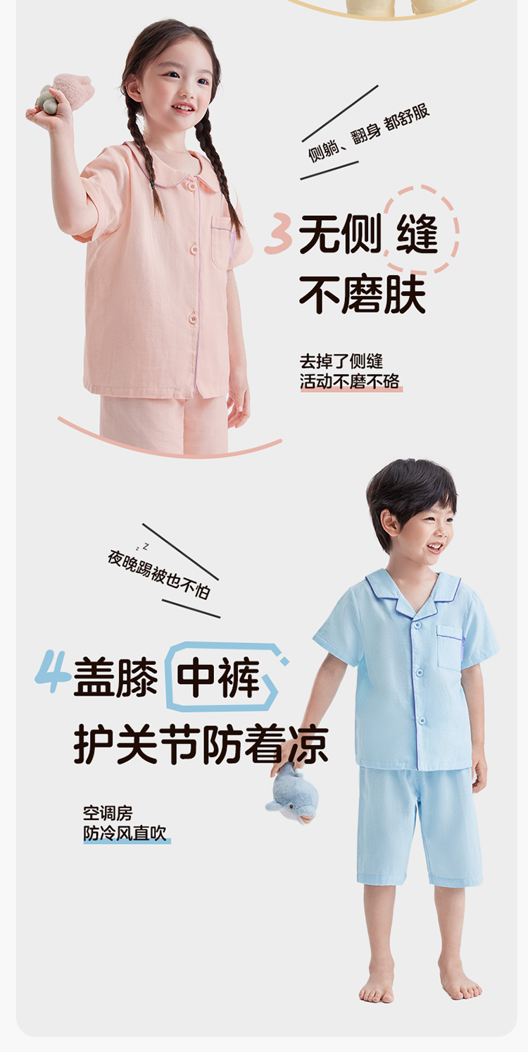 全棉时代2025年夏新款儿童纱布家居服男女孩空调服宝宝睡衣裤套装
