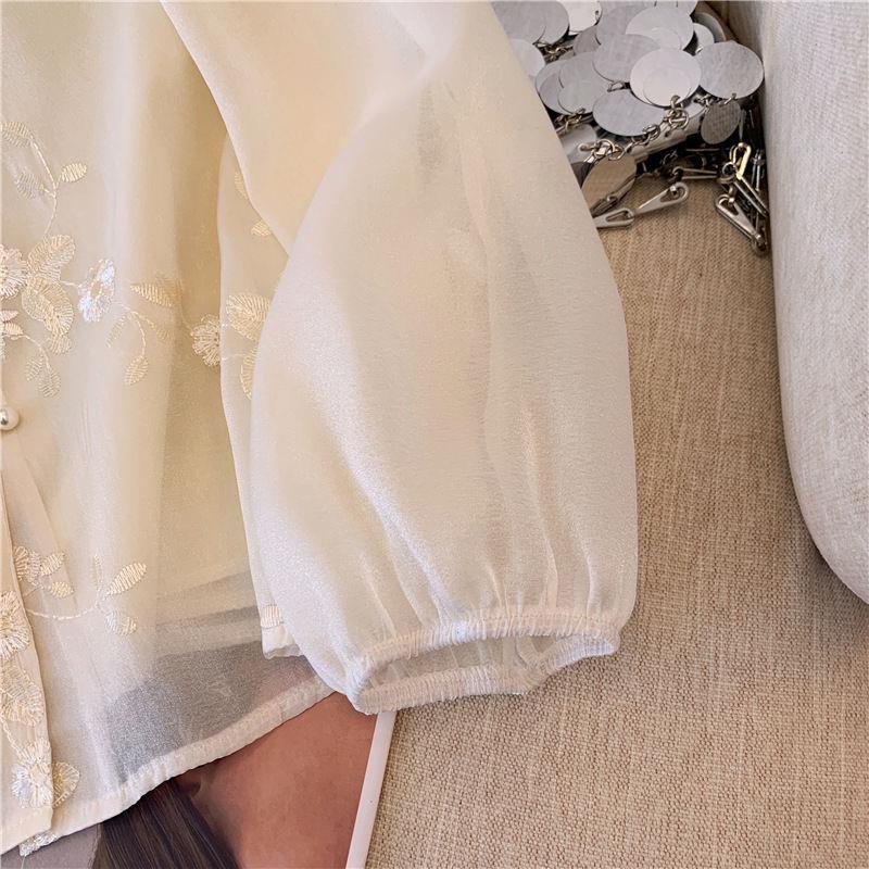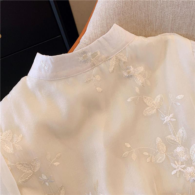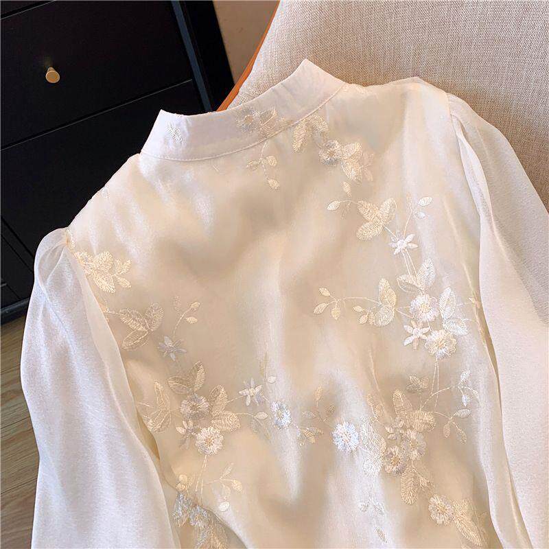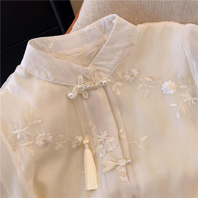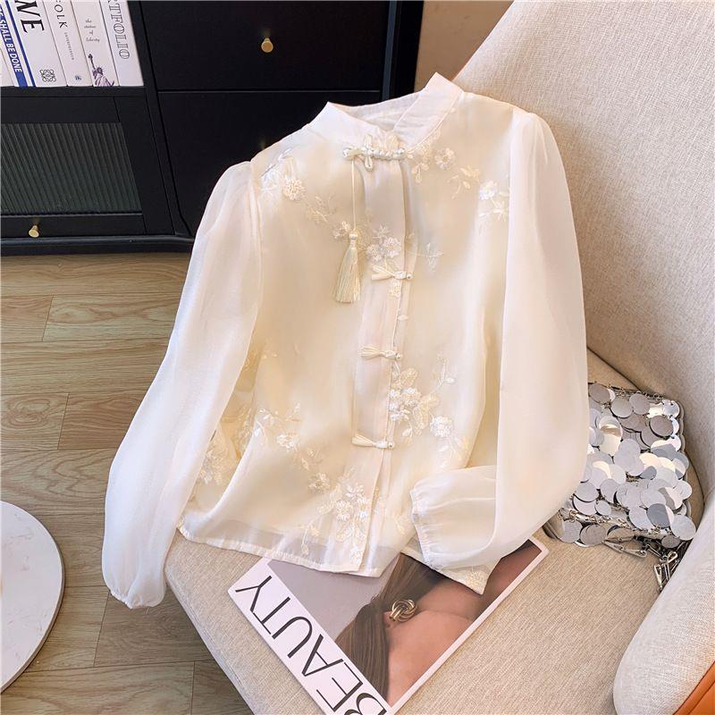 新中式流苏盘扣立领雪纺衬衫女春装新款提花刺绣小衫马面裙上衣服