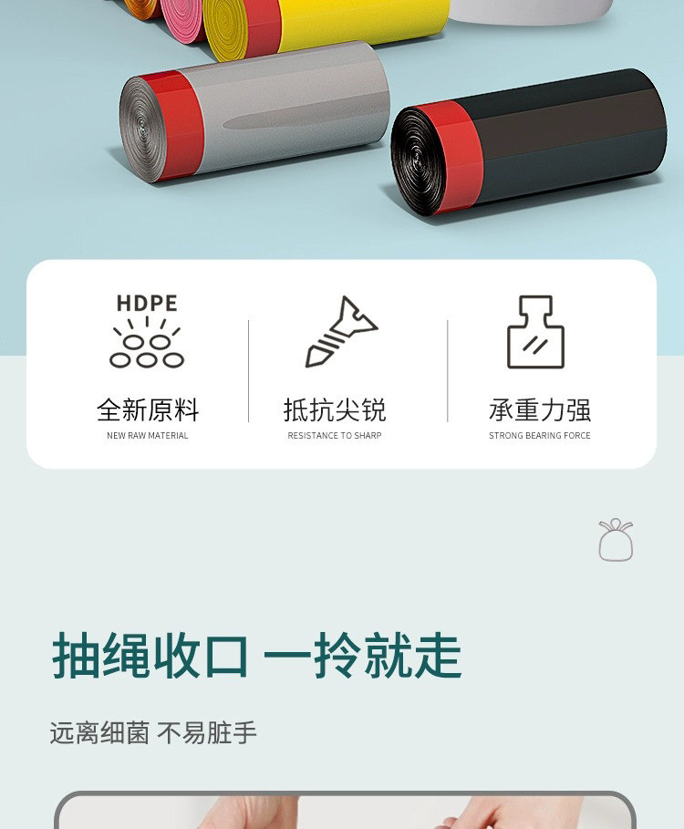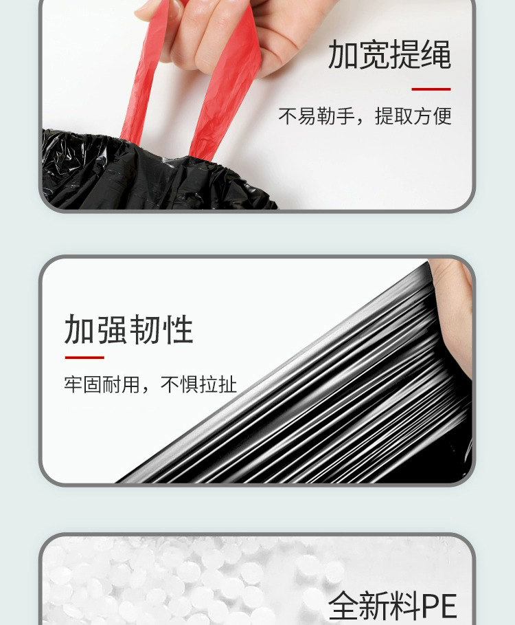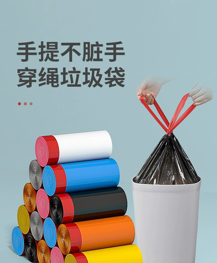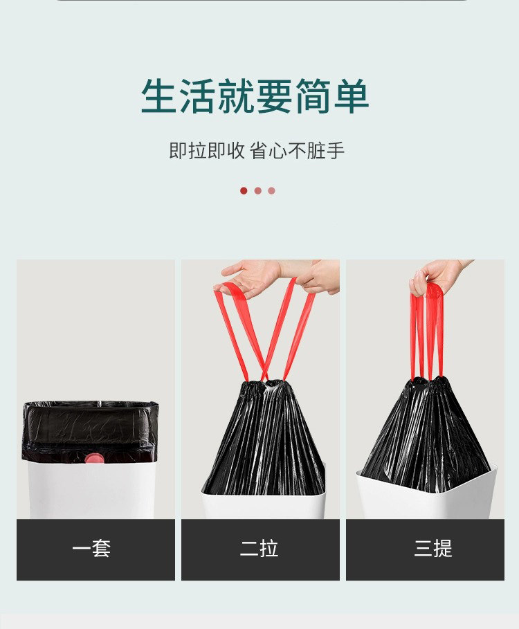 抽绳垃圾袋家用加厚大号手提式加厚特厚塑料袋宿舍用学生厨余黑色