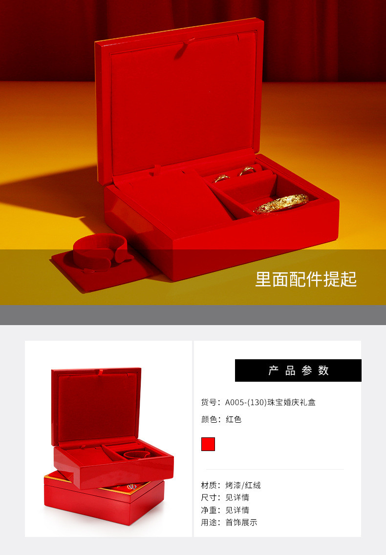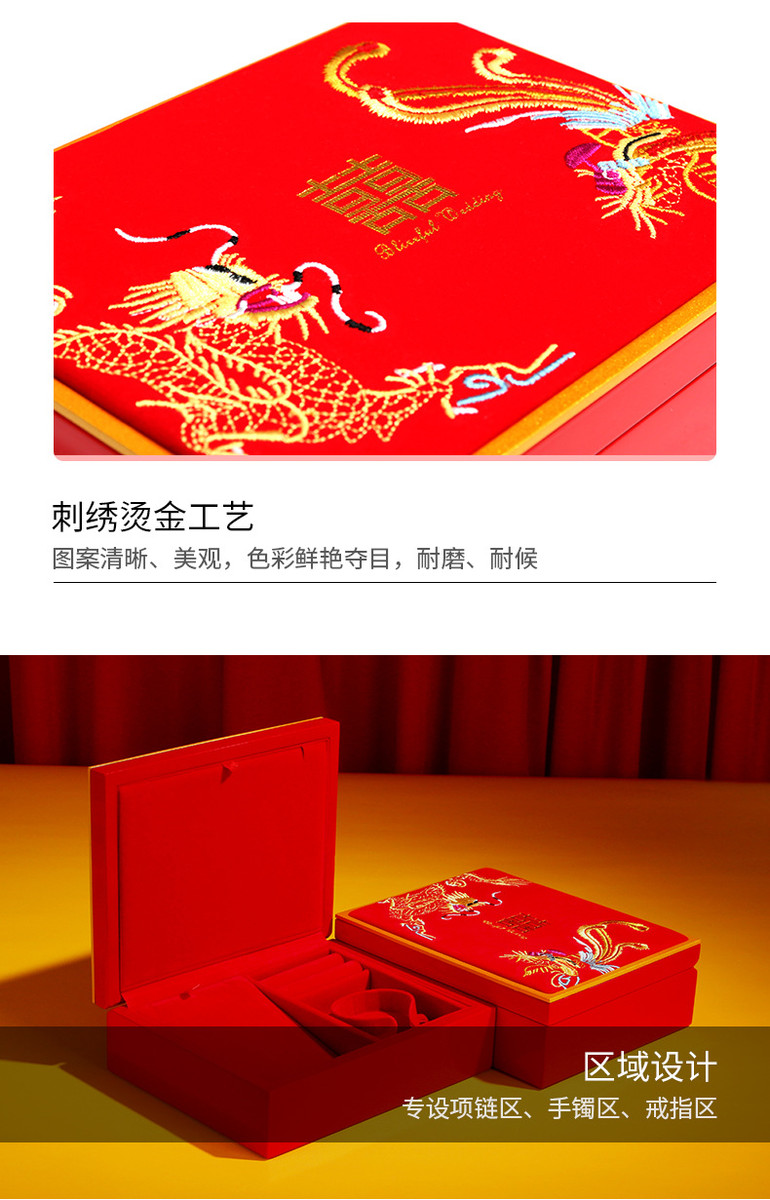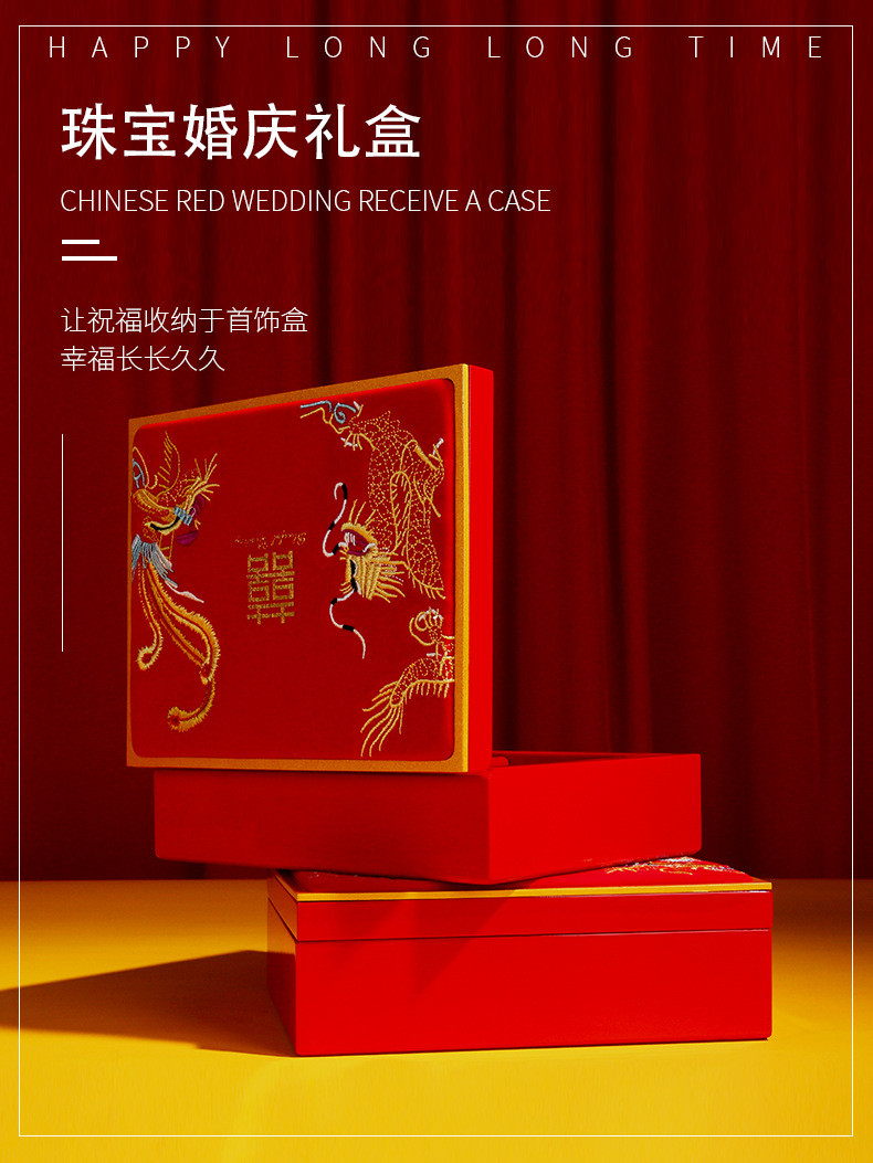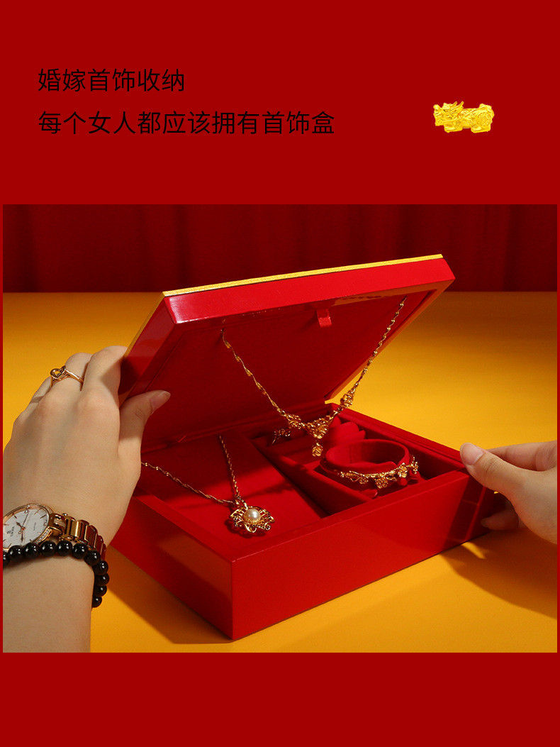 囍钢琴烤漆三金首饰盒龙凤聘礼嫁妆套装盒黄金手镯中国风婚庆木盒
