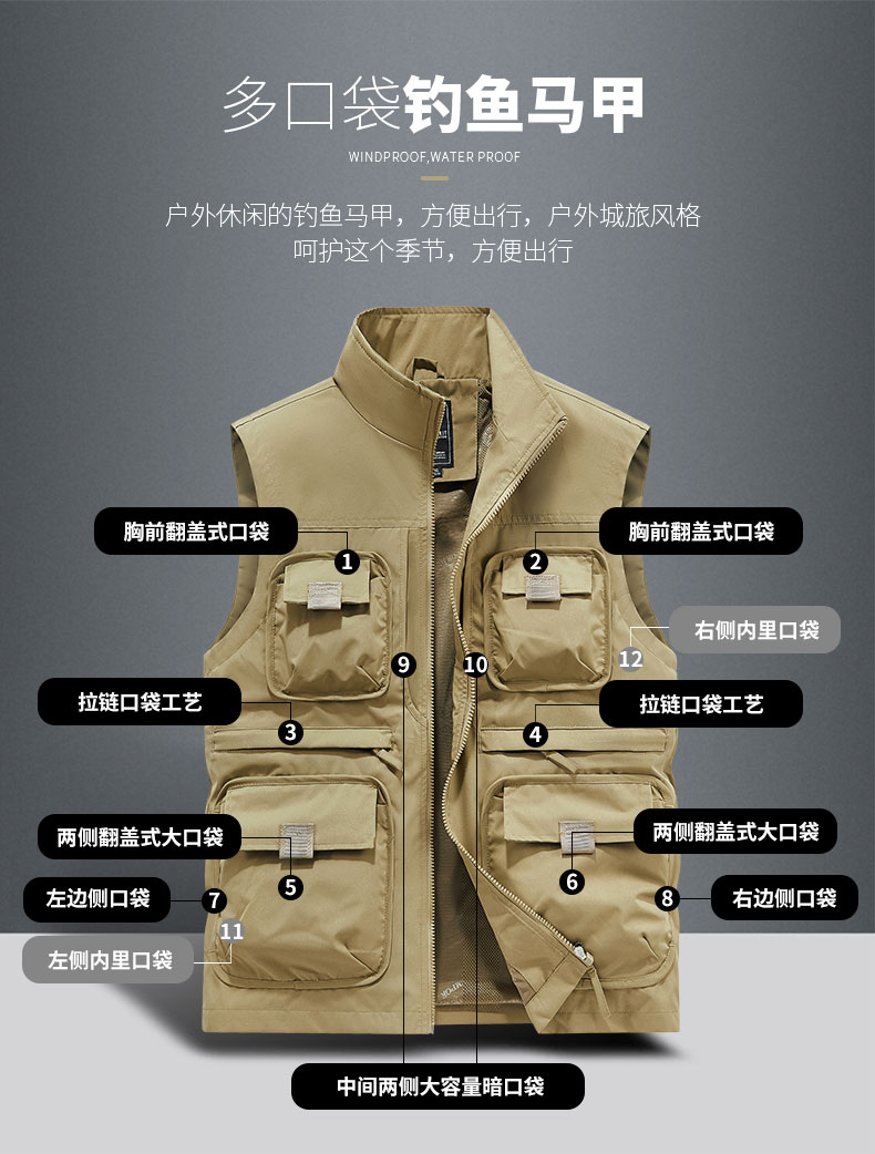 钓鱼马甲男户外登山露营机能路亚多功能战术背心夏季工装摄影马夹