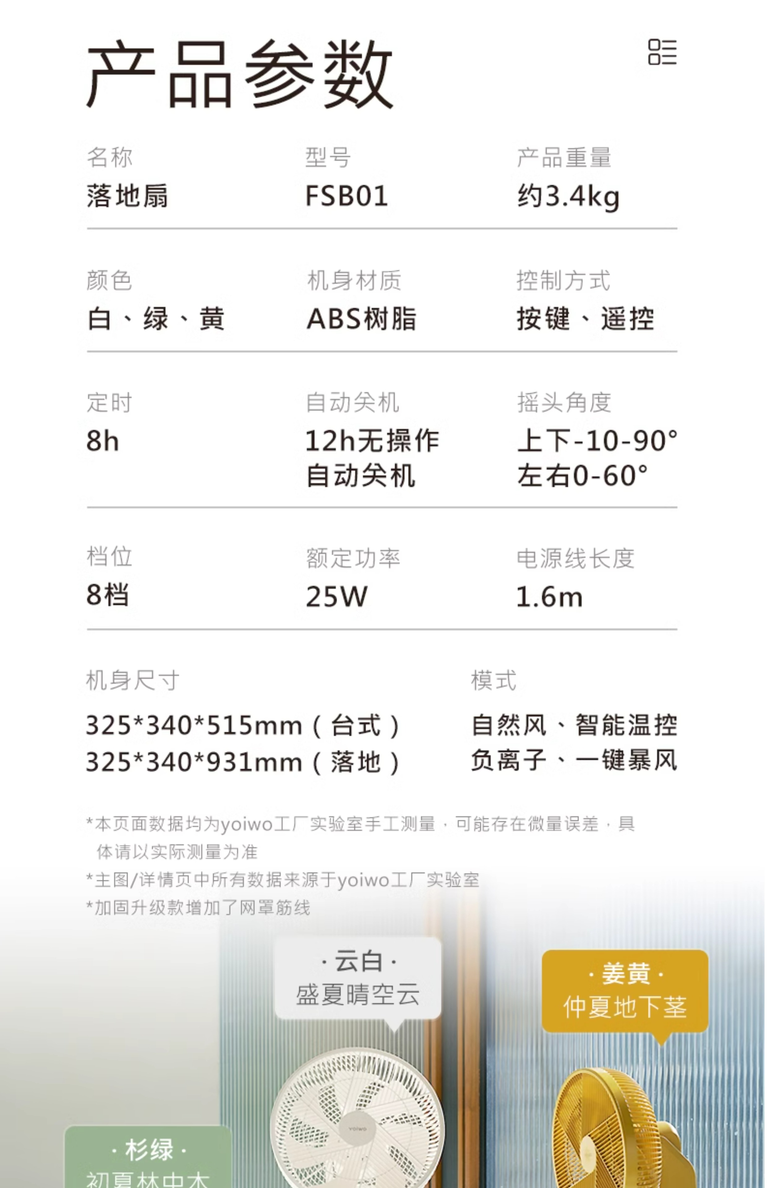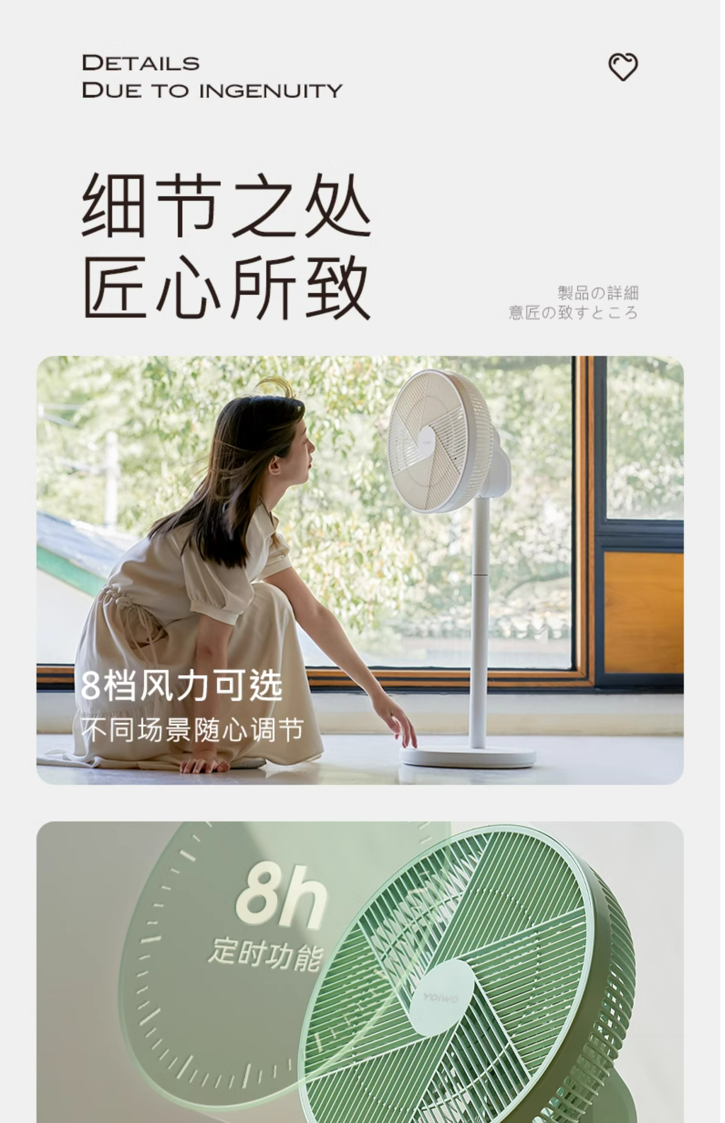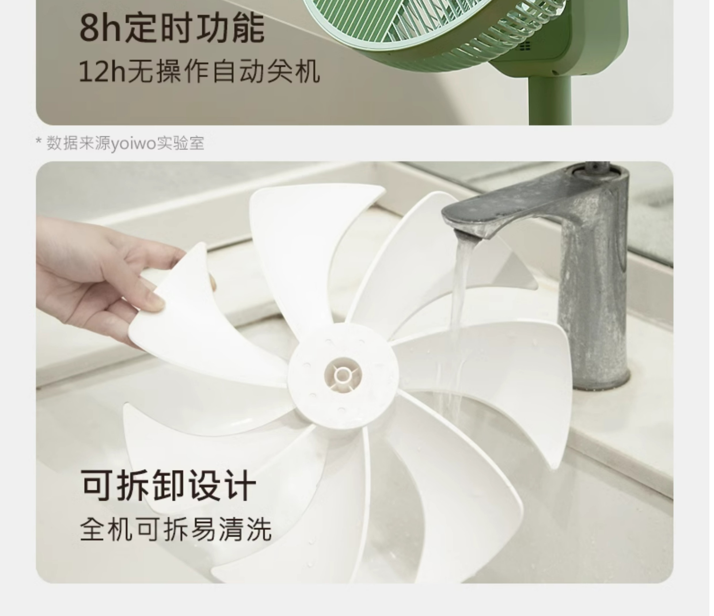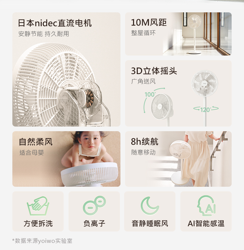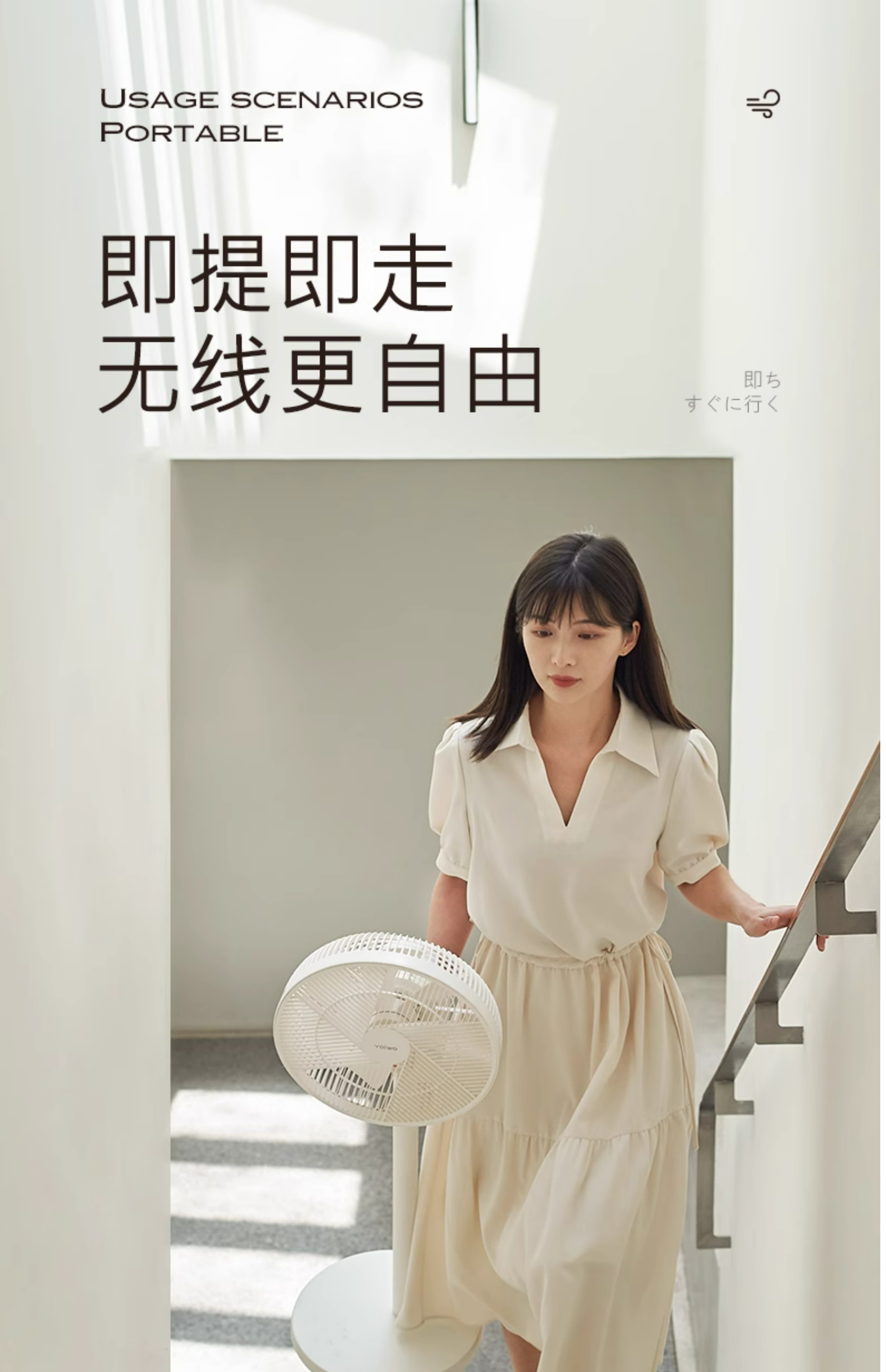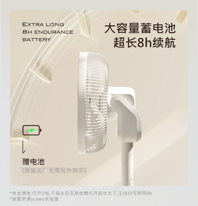 日本yoiwo无线空气循环扇电风扇微静音家用充电电扇卧室落地扇