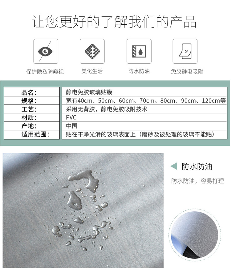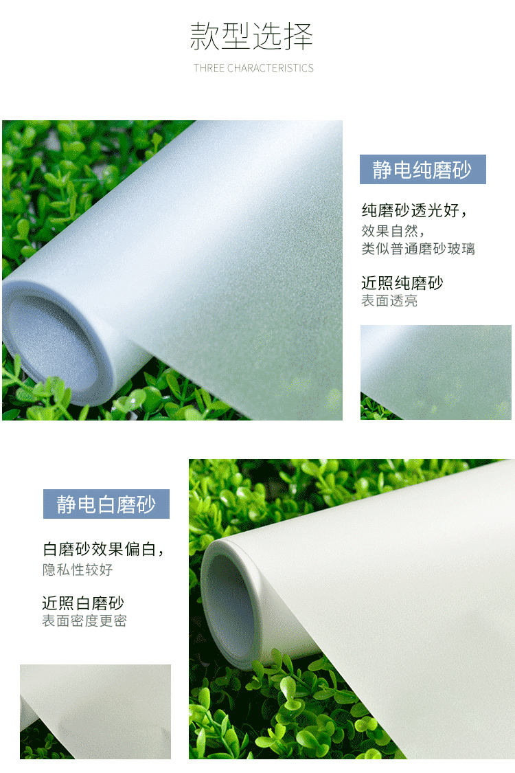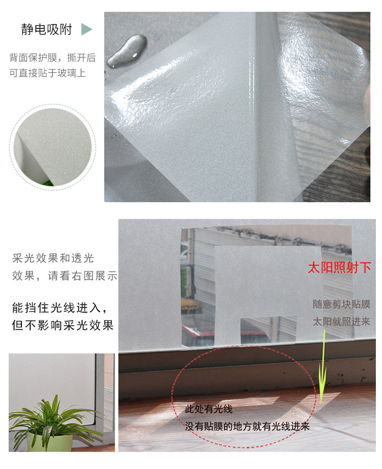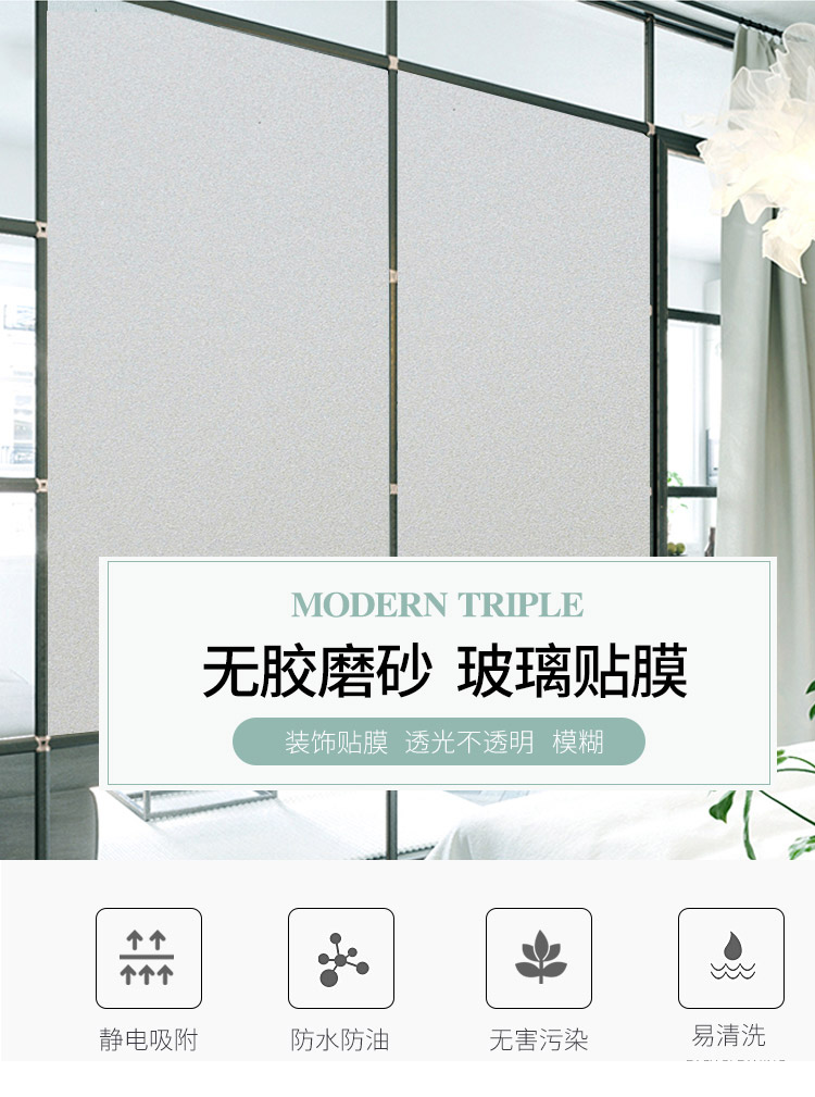 静电无胶玻璃贴纸透光不透明磨砂浴室办公室现代防晒玻璃膜防走光