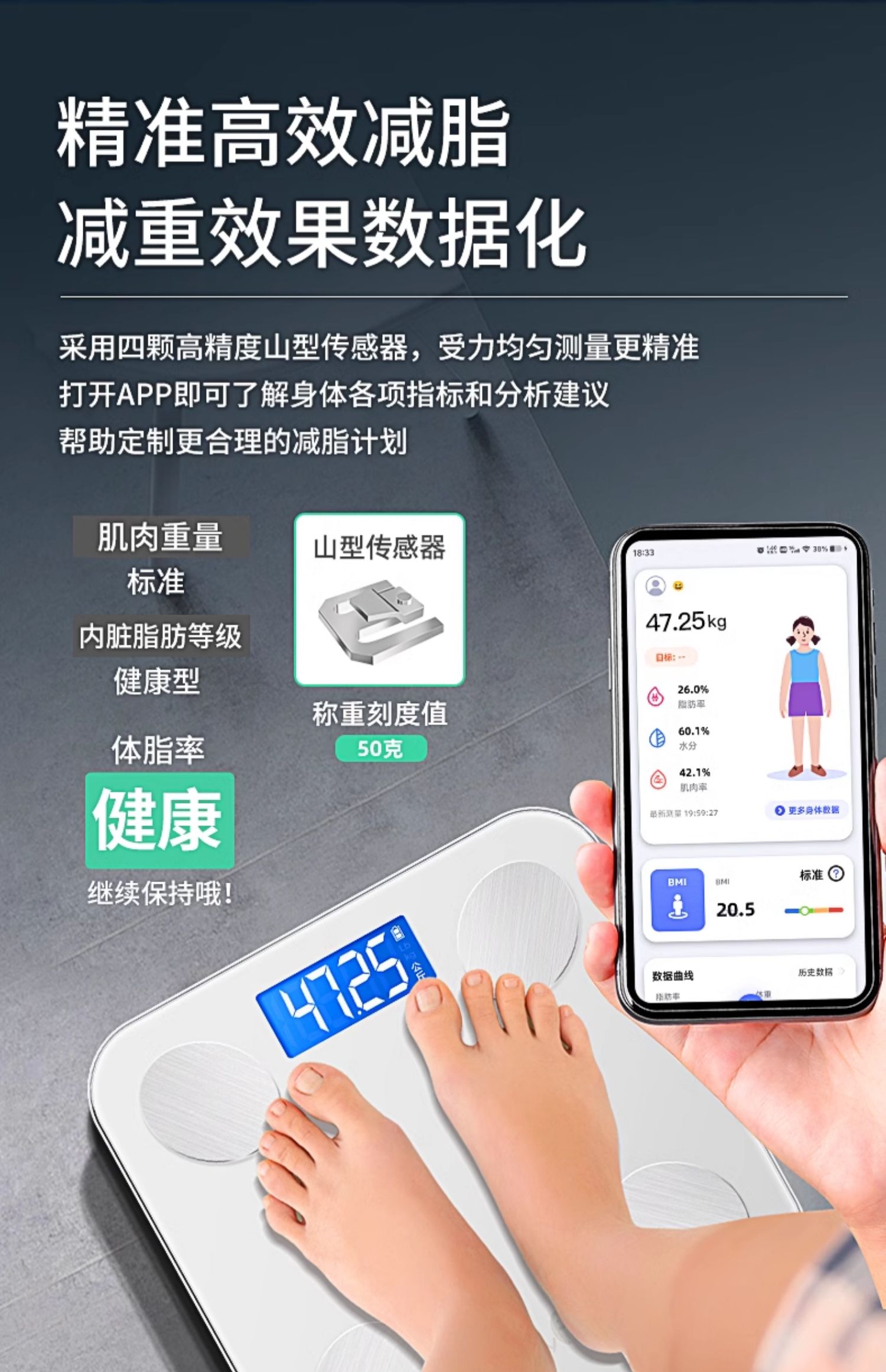体重秤家用小型电子秤精准充电人体称家庭体脂秤宿舍高精度称重计