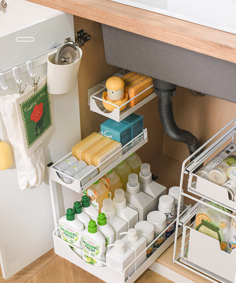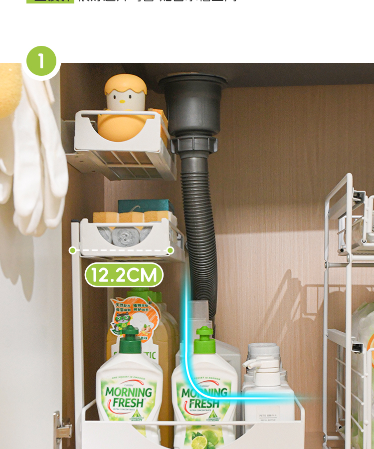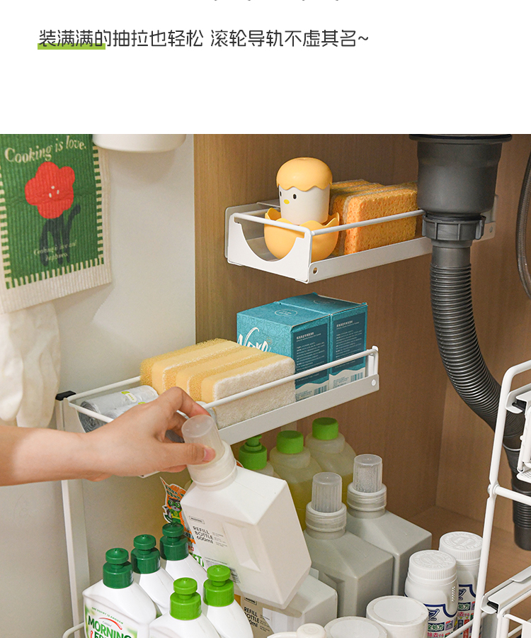 厨房下水槽拉篮置物架双层抽拉式橱柜内分层储物筐浴室柜台下收纳