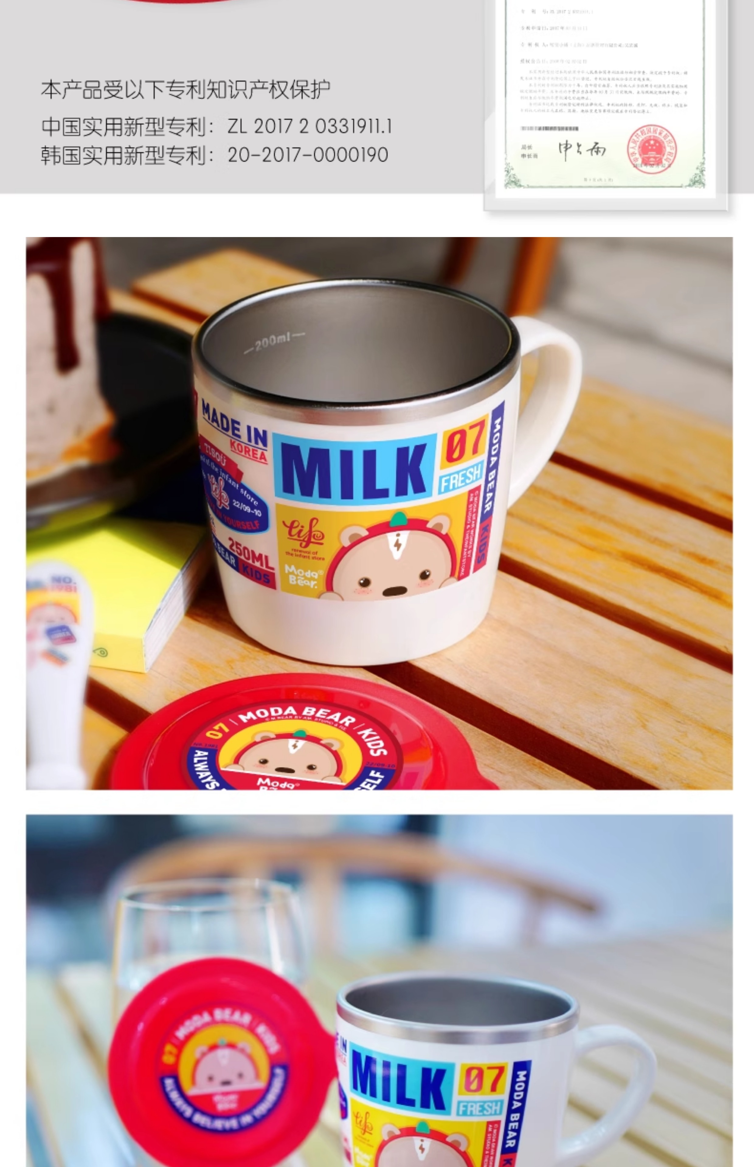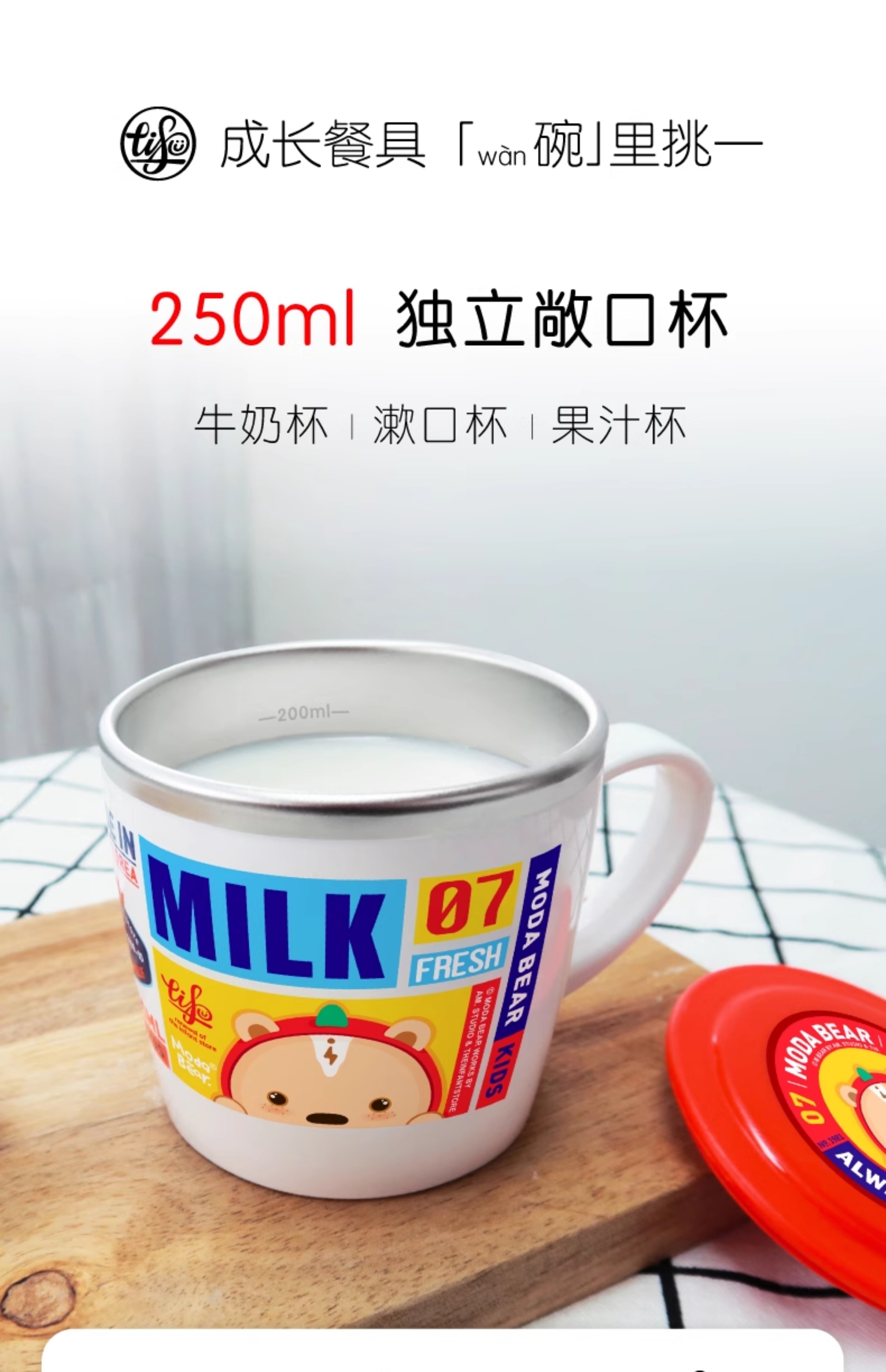 TISOU奶萌杯不锈钢儿童水杯幼儿园上学专用杯子 家用小水杯夏天