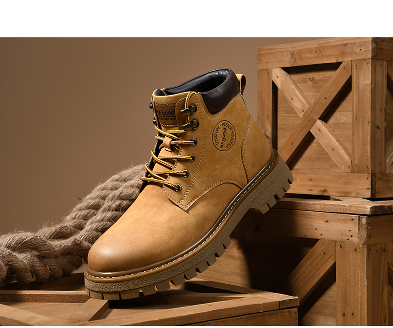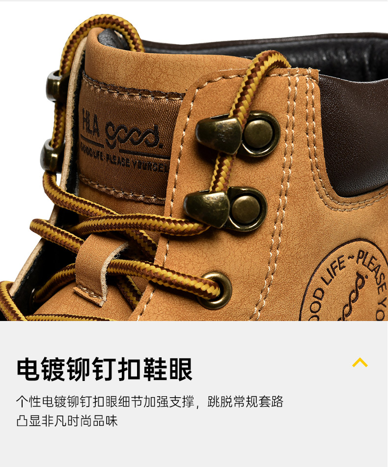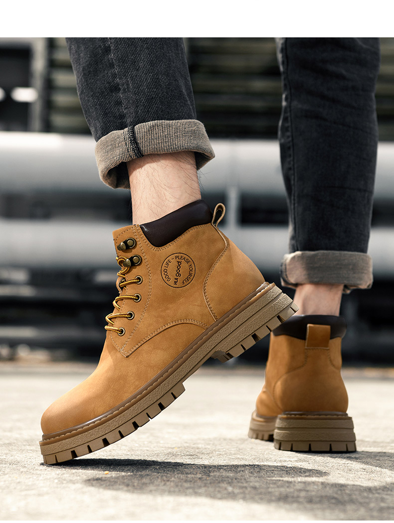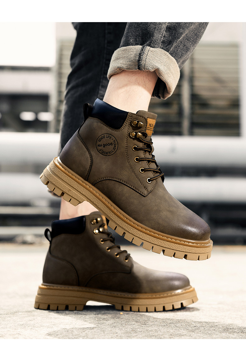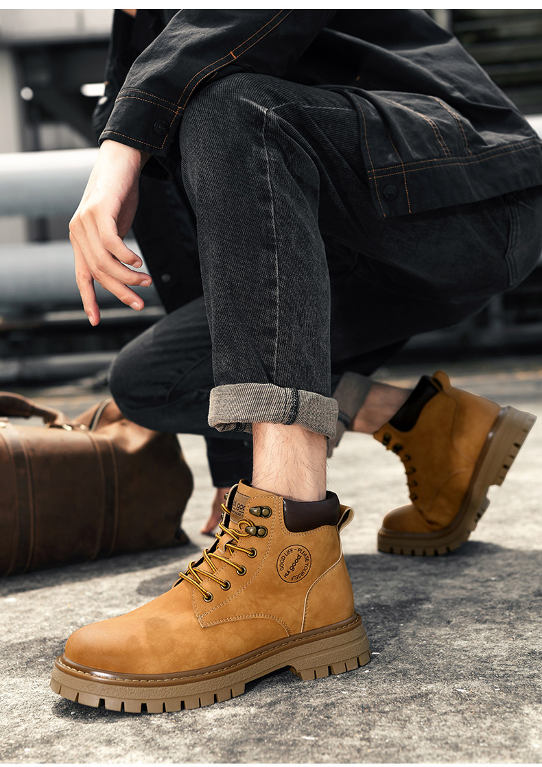 海澜之家男鞋马丁靴2025新款真皮英伦风工装鞋男户外登山大黄靴子