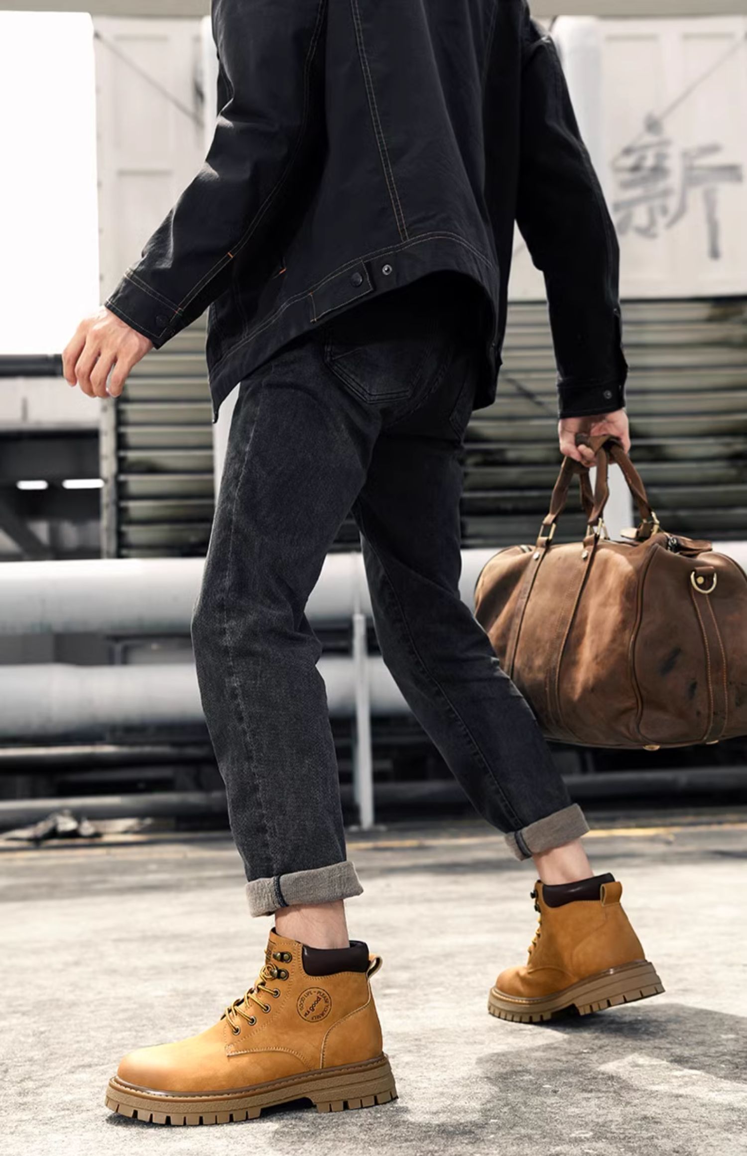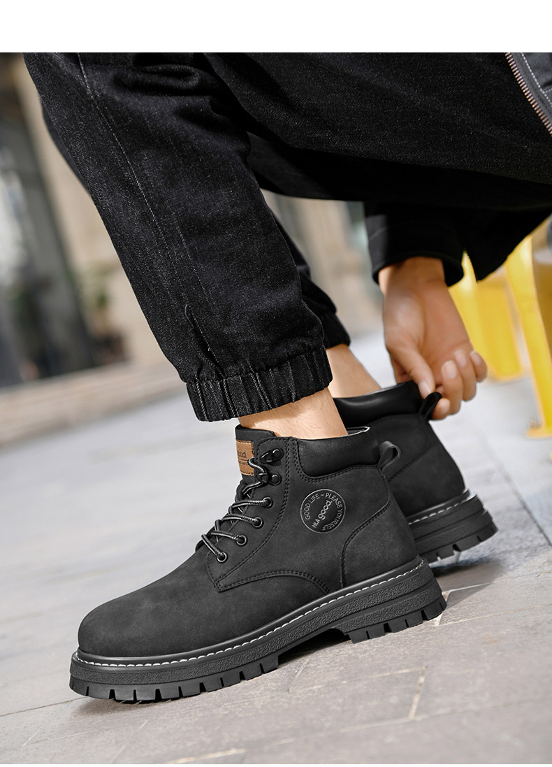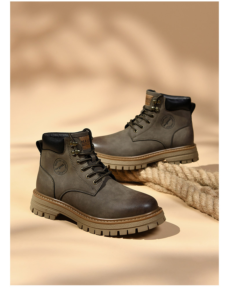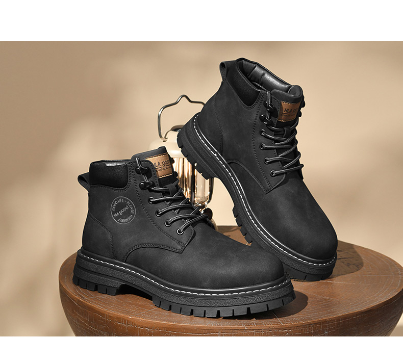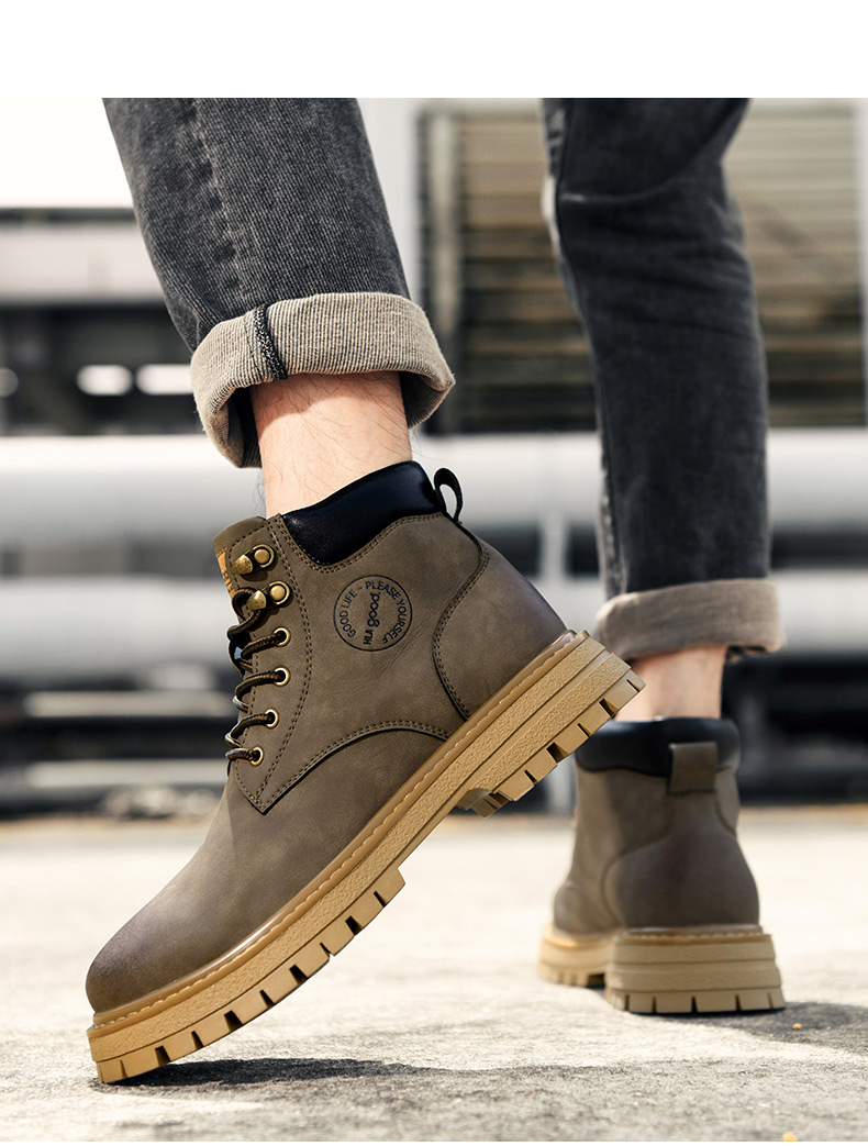 海澜之家男鞋马丁靴2025新款真皮英伦风工装鞋男户外登山大黄靴子