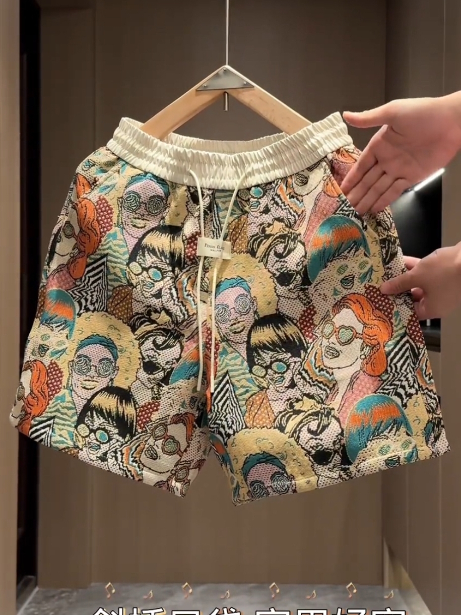 夏季新款美式色织提花休闲短裤男潮牌时尚撞色宽松情侣运动五分裤