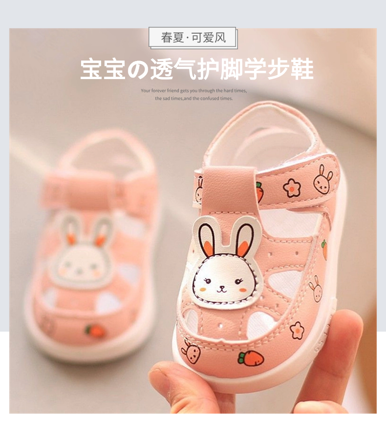 婴儿鞋夏款软底防掉包头凉鞋0-2岁可爱卡通男女宝宝学步鞋子透气1