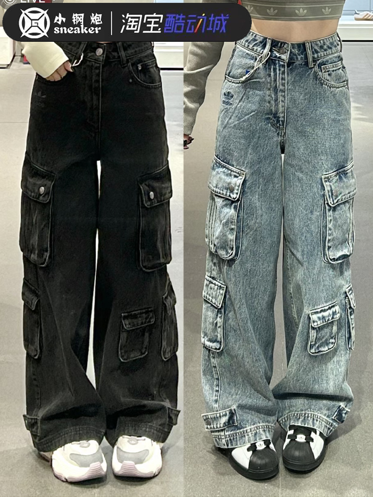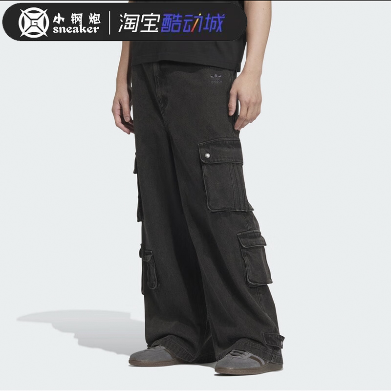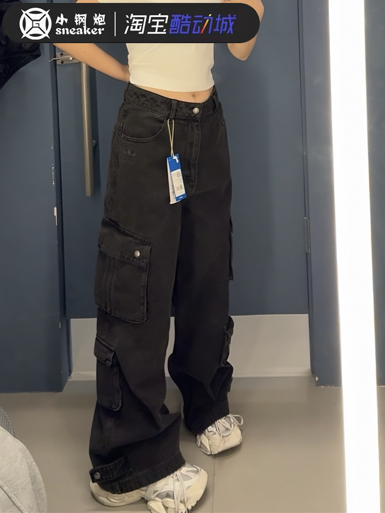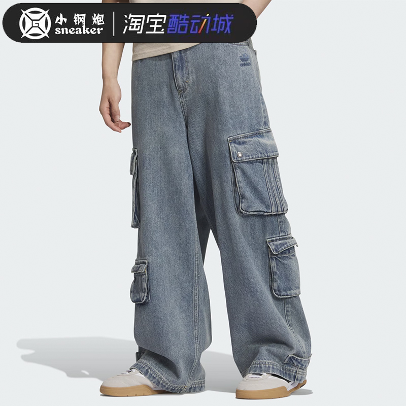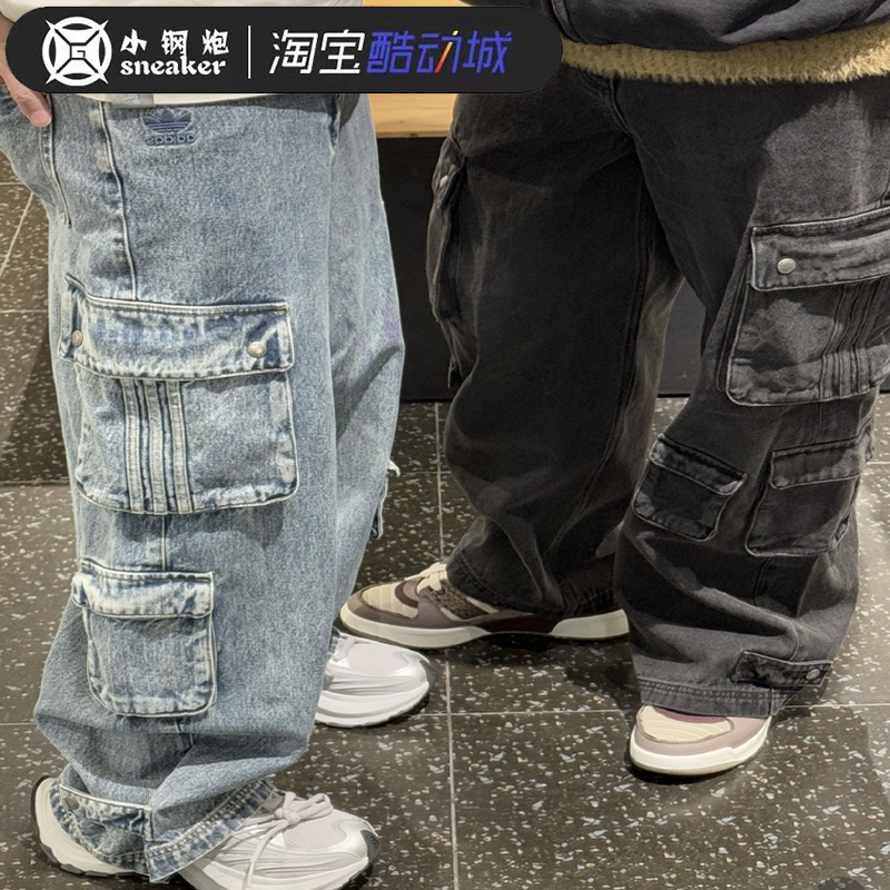 阿迪达斯三叶草牛仔裤男女王安宇同款休闲阔腿工装裤JY0203JY0204