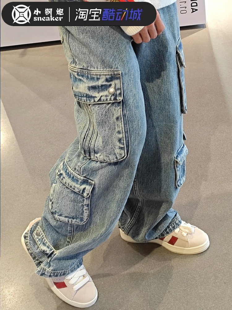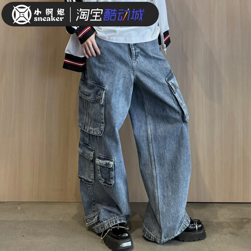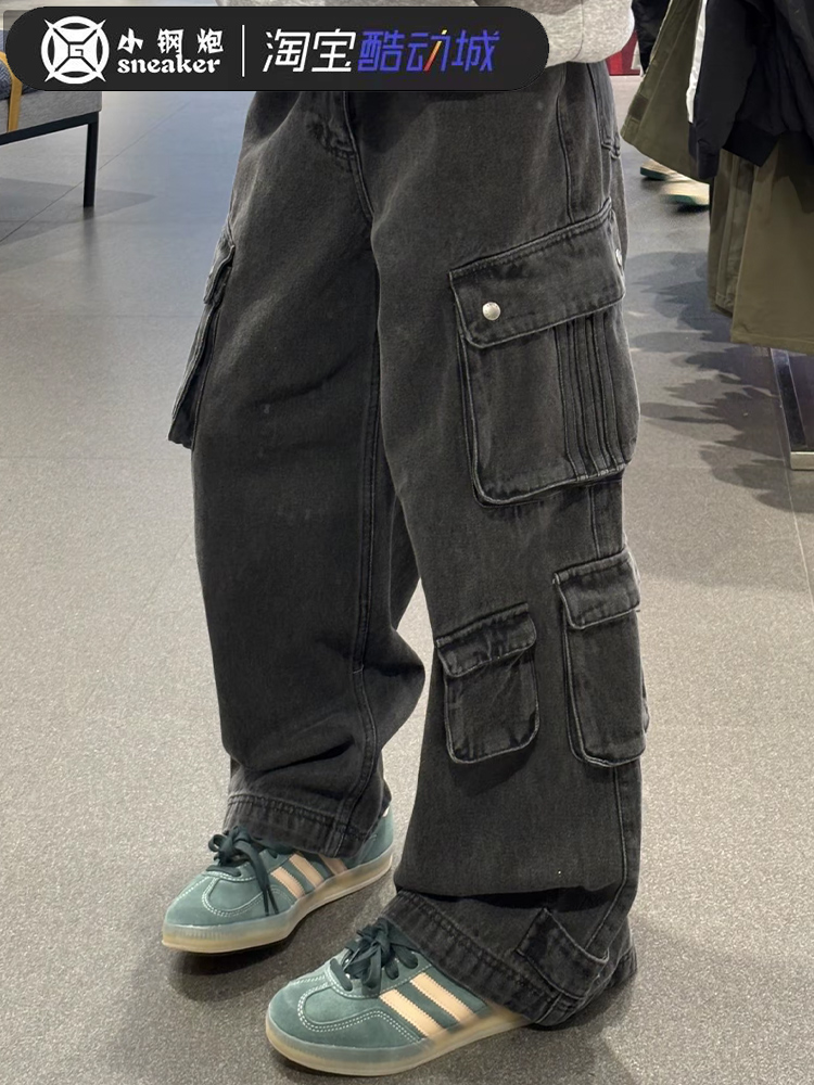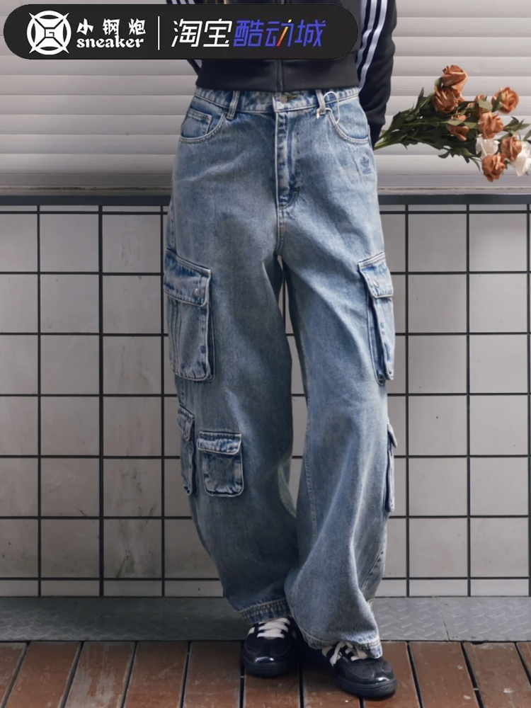 阿迪达斯三叶草牛仔裤男女王安宇同款休闲阔腿工装裤JY0203JY0204