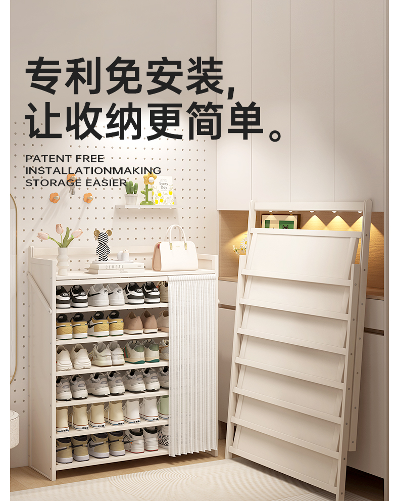 鞋架免安装一体式一拉就用家用门口多层简易防尘鞋柜租房必备神器