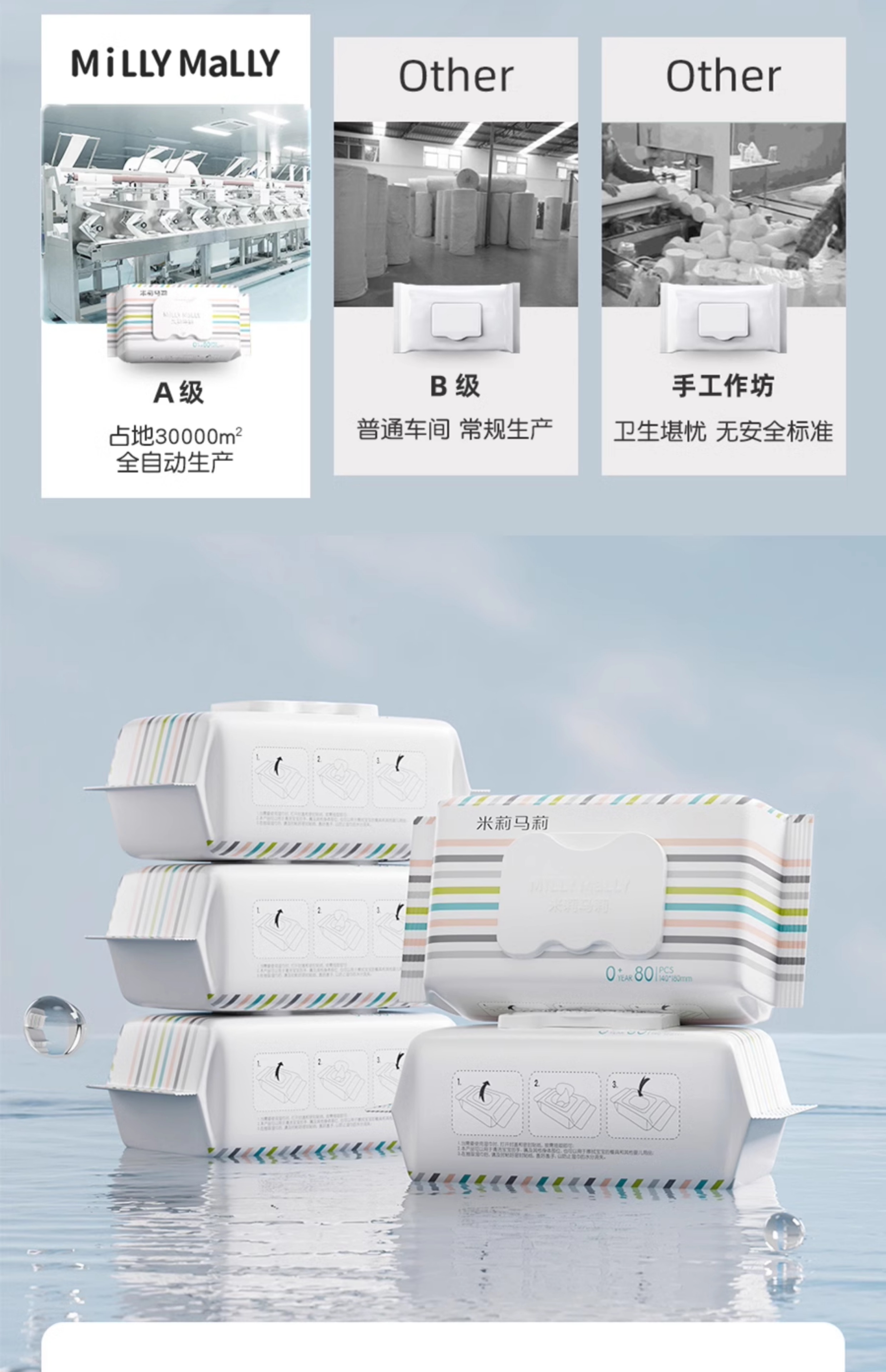 米莉马莉婴儿新生湿巾手口专用宝宝纸巾擦屁股儿童家用实惠大包装