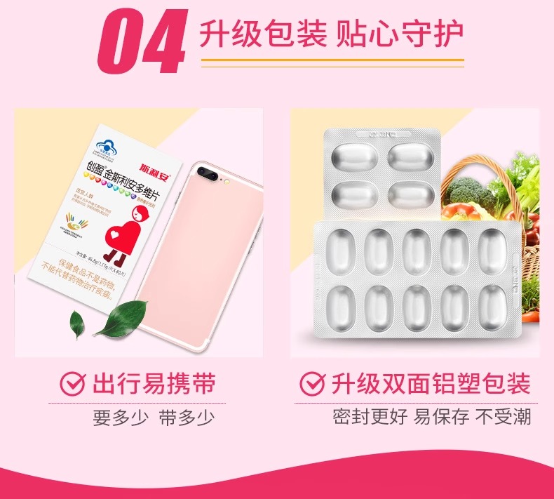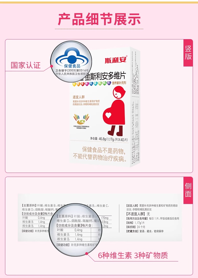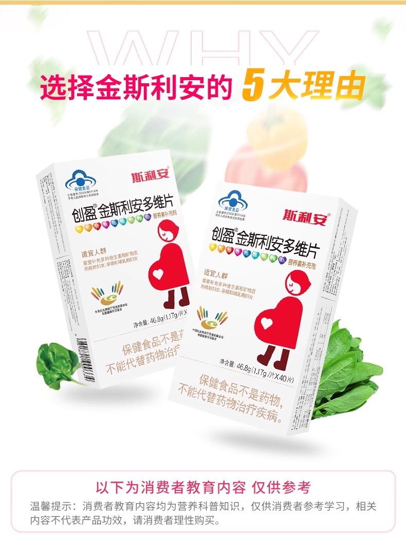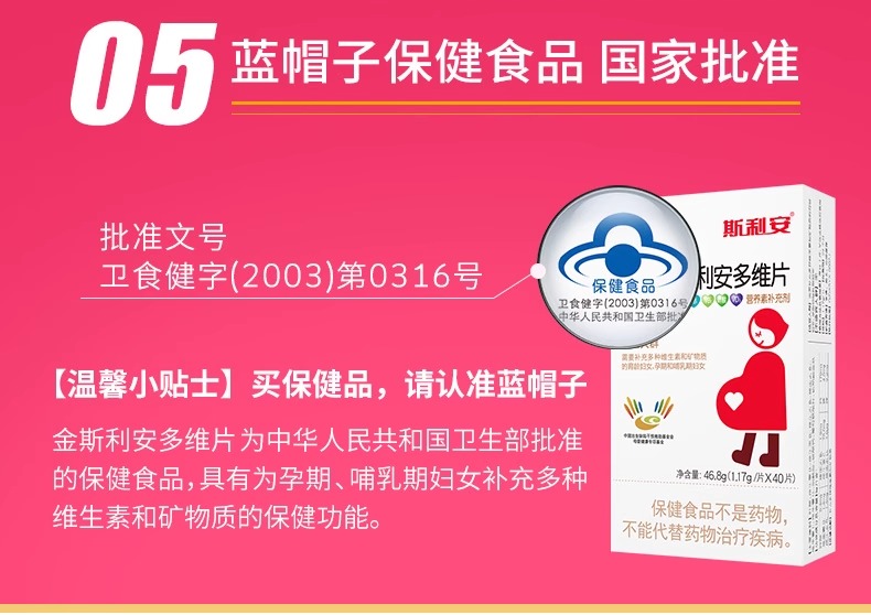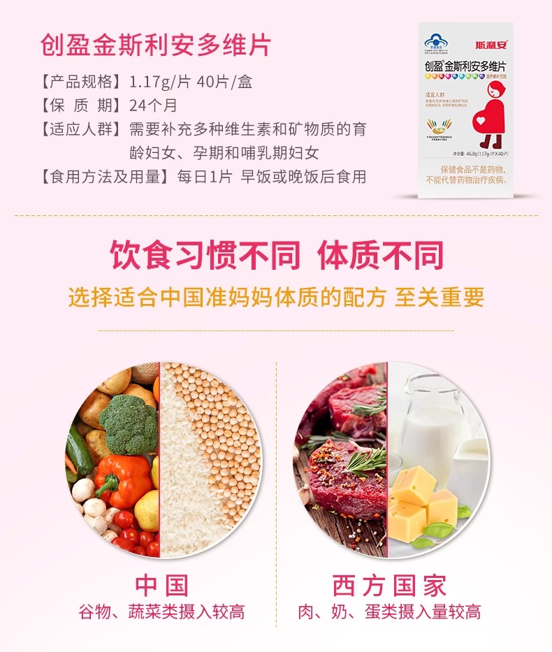 金斯利安创盈孕妇多维片40片盒装孕期多种维生素矿物质片备孕叶酸