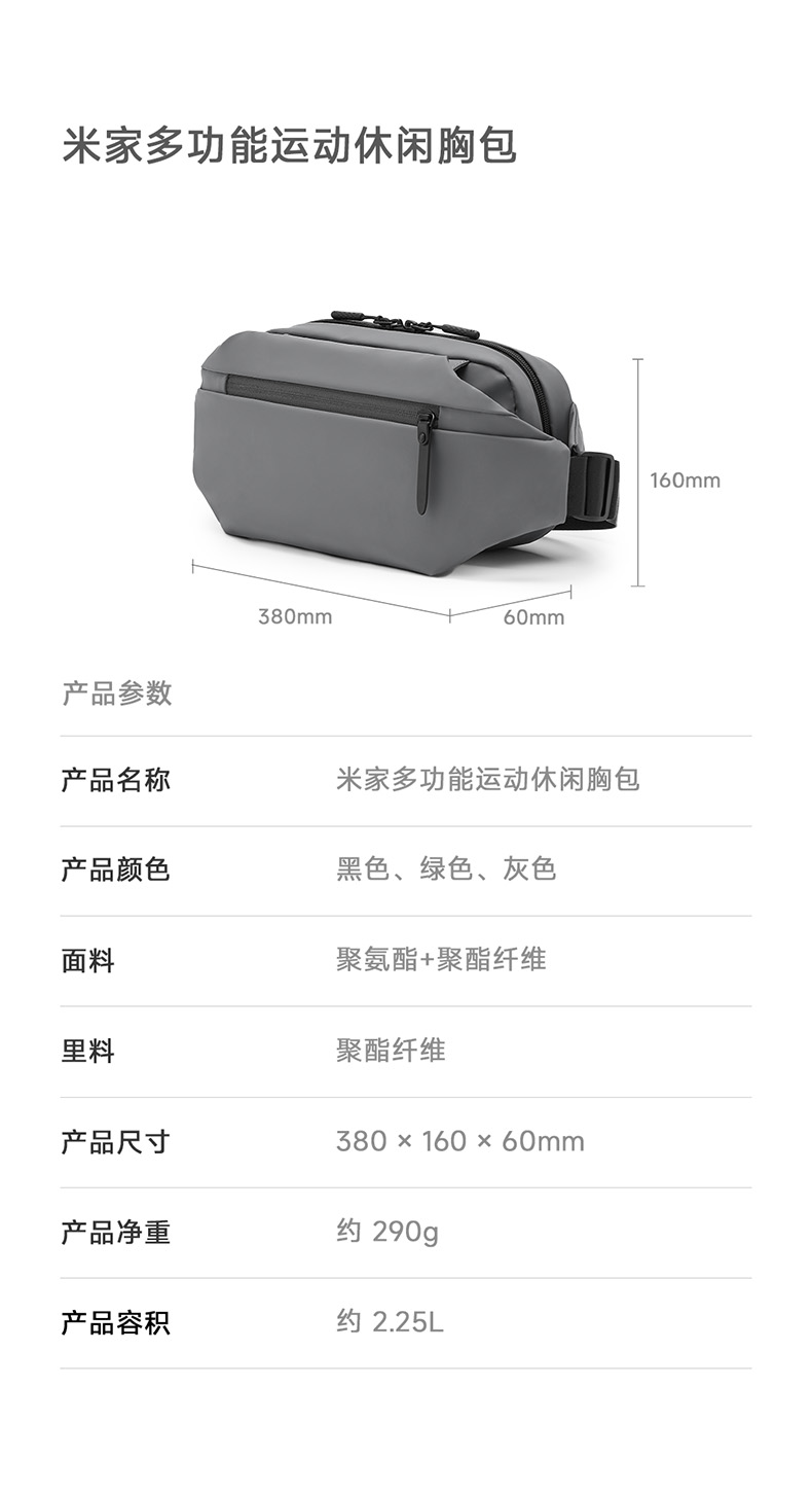 小米米家胸包多功能休闲胸包单肩包斜挎包实用多分区运动腰包背包