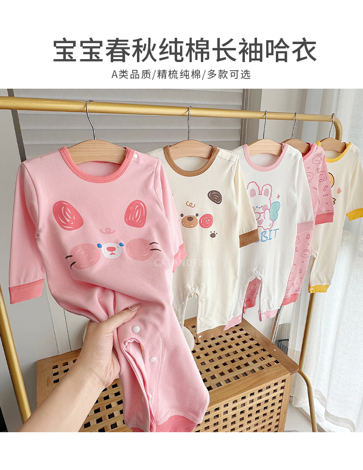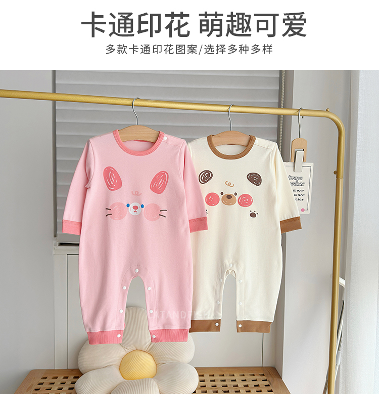 女童长袖爬服哈衣男童婴儿纯棉连体衣新生宝宝春秋装可爱卡通睡衣