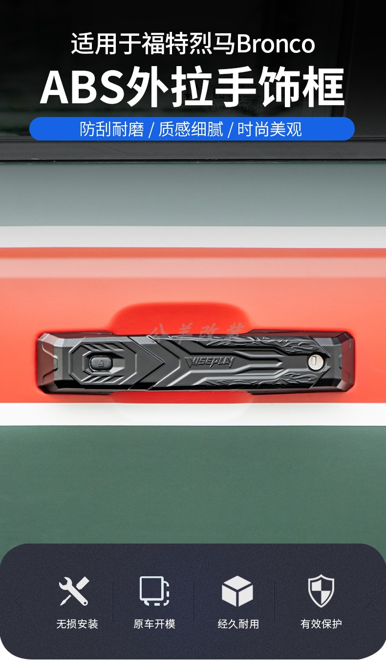 适用于福特烈马bronco改装车门外拉手ABS后尾门拉手门把手装饰盖