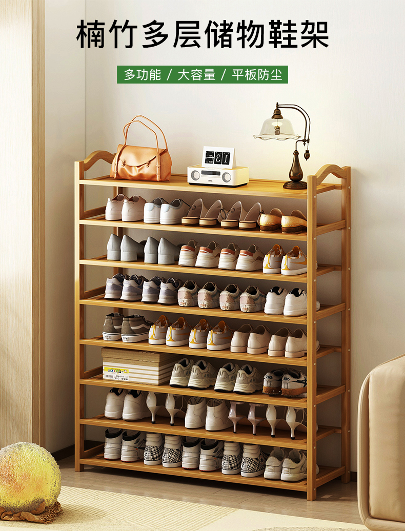 简易室内好看鞋柜家用经济型防尘收纳神器多层架子大容量竹非实木