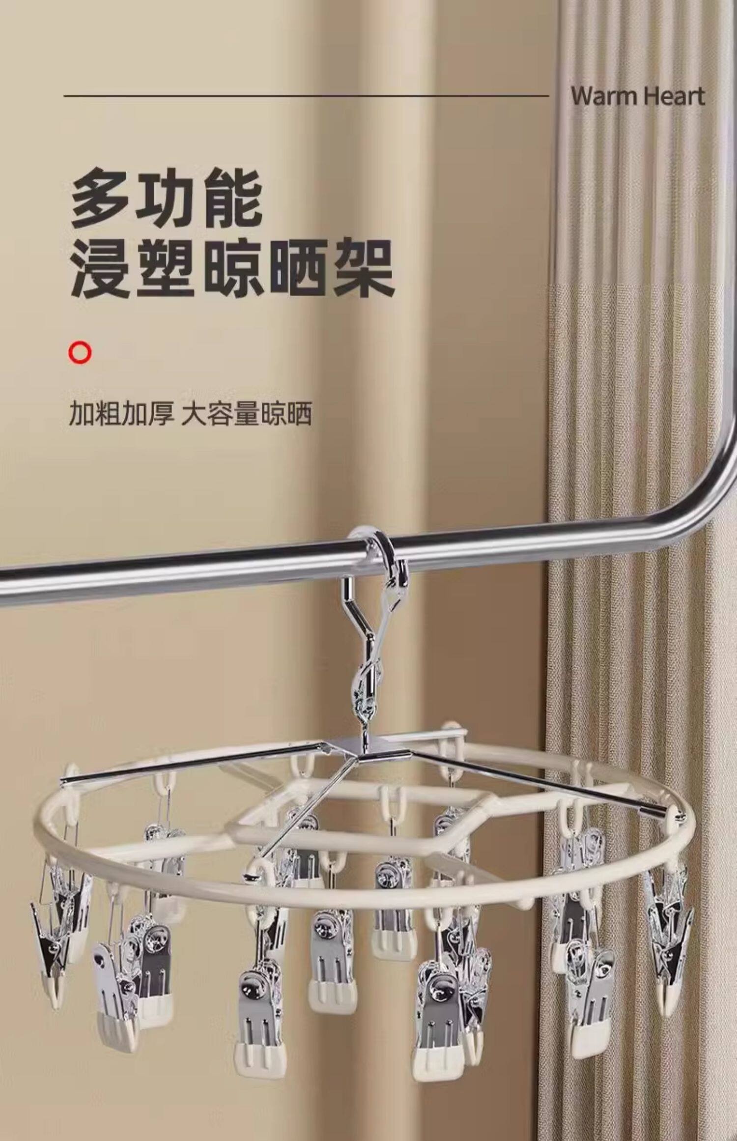 不锈钢多夹防滑防锈袜子架家用衣架自动卡扣防掉落多功能晾内衣夹
