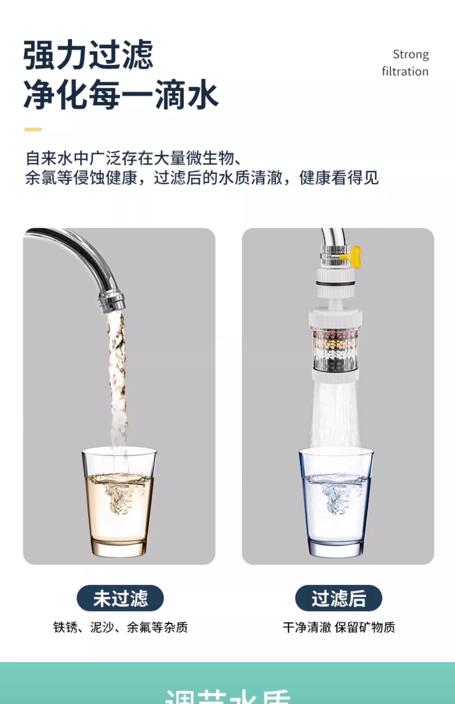 水龙头过滤器家用自来水净化器360旋转净厨房滤嘴防溅水净器通用