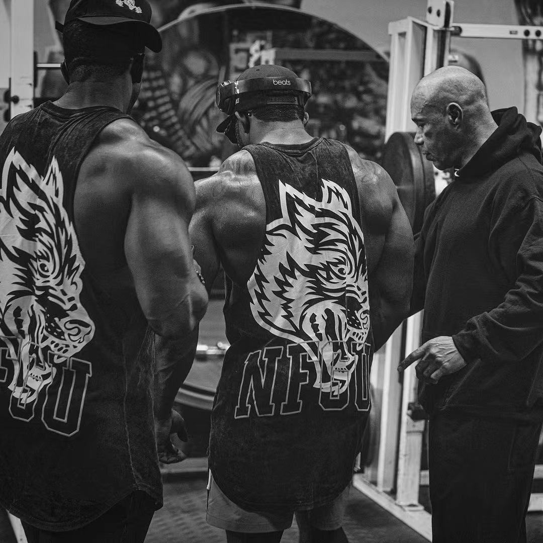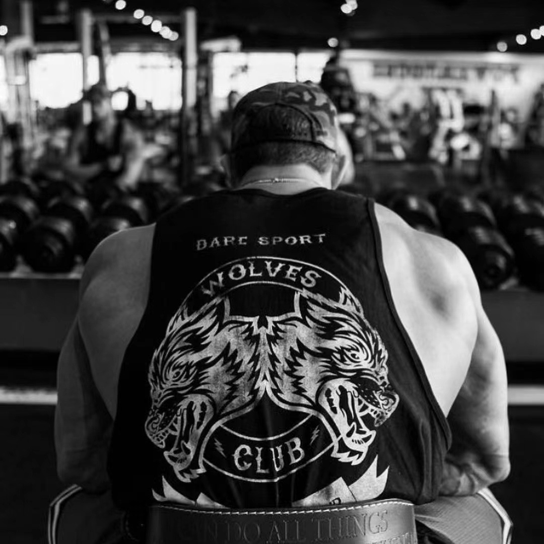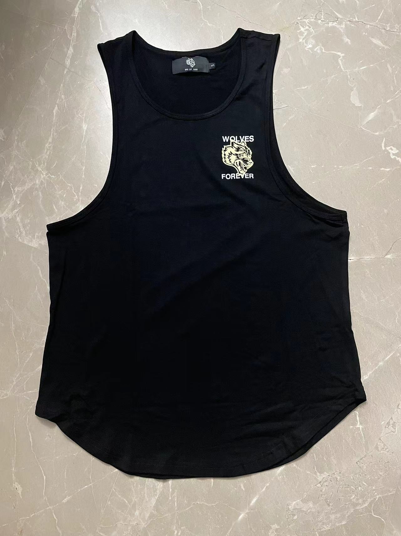 狼头运动背心弹力健身宽松透气男无袖上衣欧美码