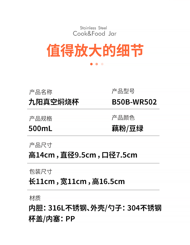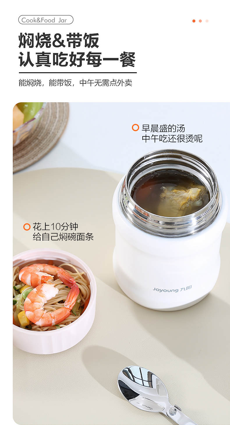 九阳保温饭盒焖烧杯上班族女带饭不锈钢饭盒便当盒餐盒超长保温桶