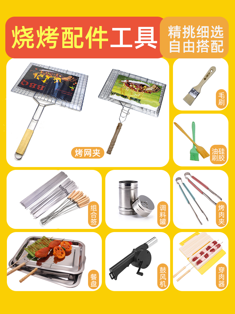 大秦左岸烧烤工具组合户外烤串用配件烤鱼夹子调料瓶刷烧烤签套装