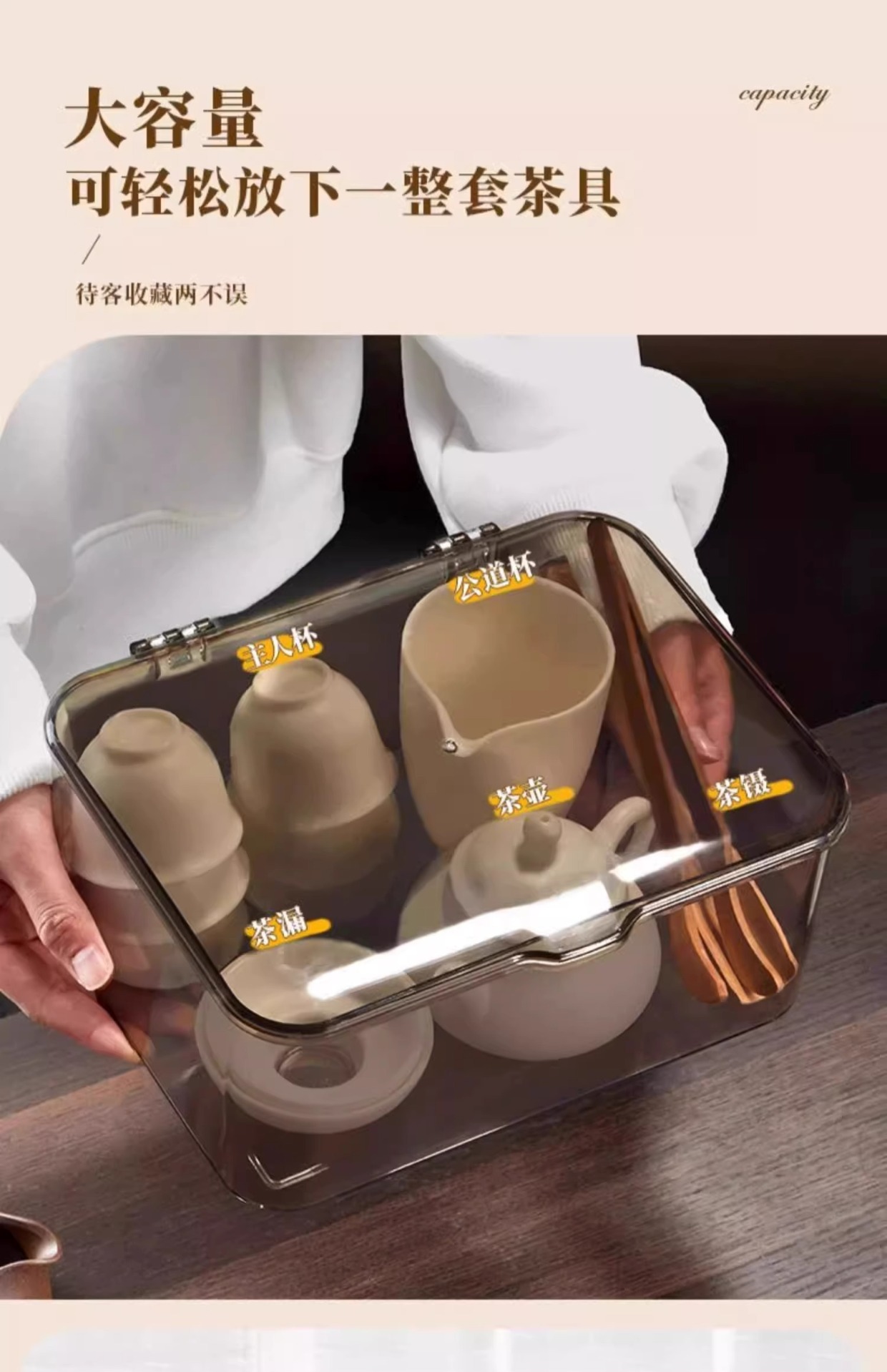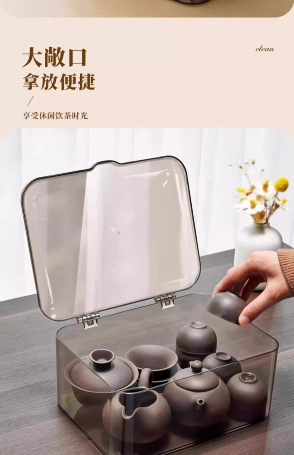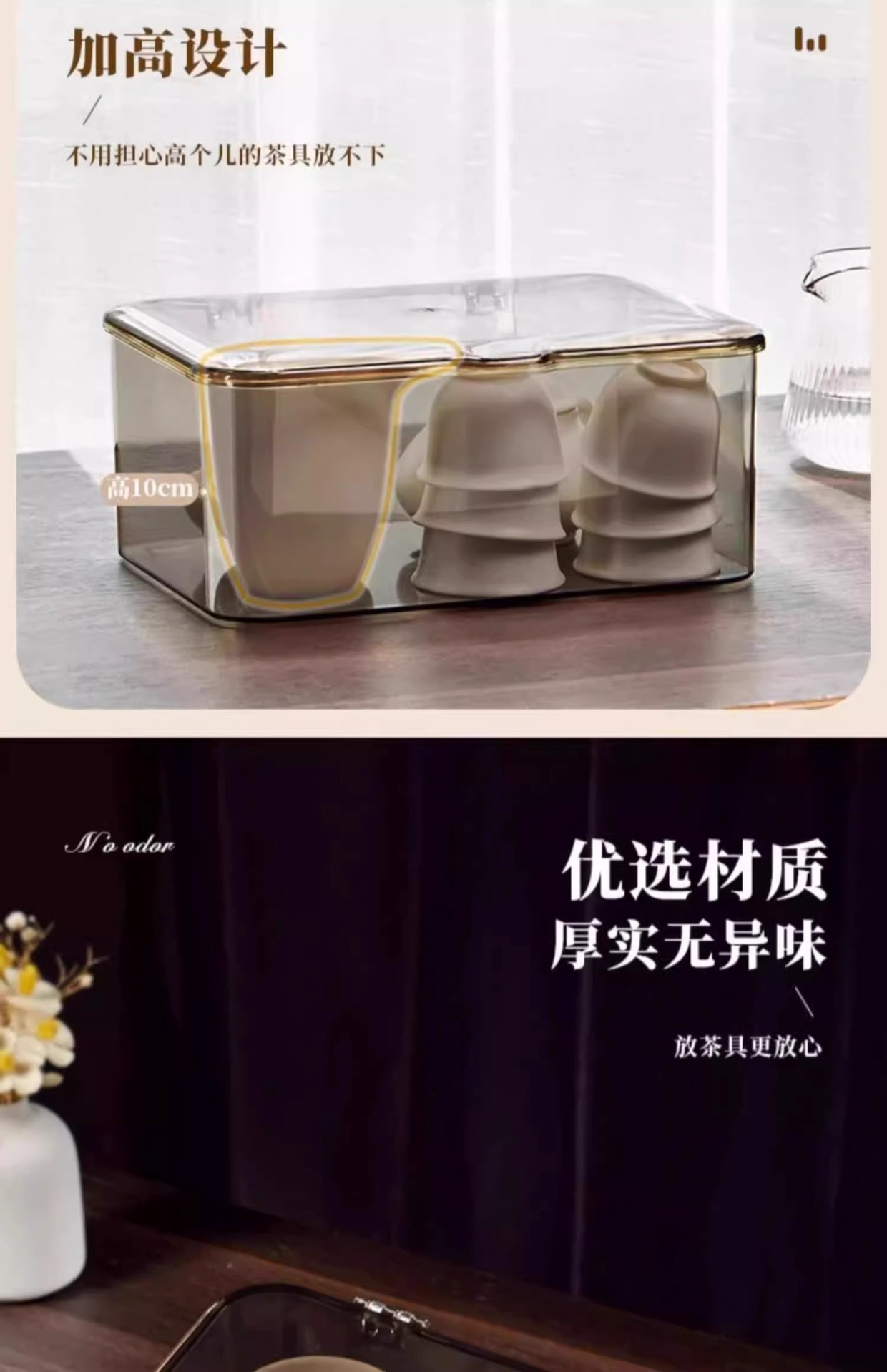 茶具收纳盒带盖防尘透明茶几桌面茶叶茶杯整理存放功夫茶壶置物架