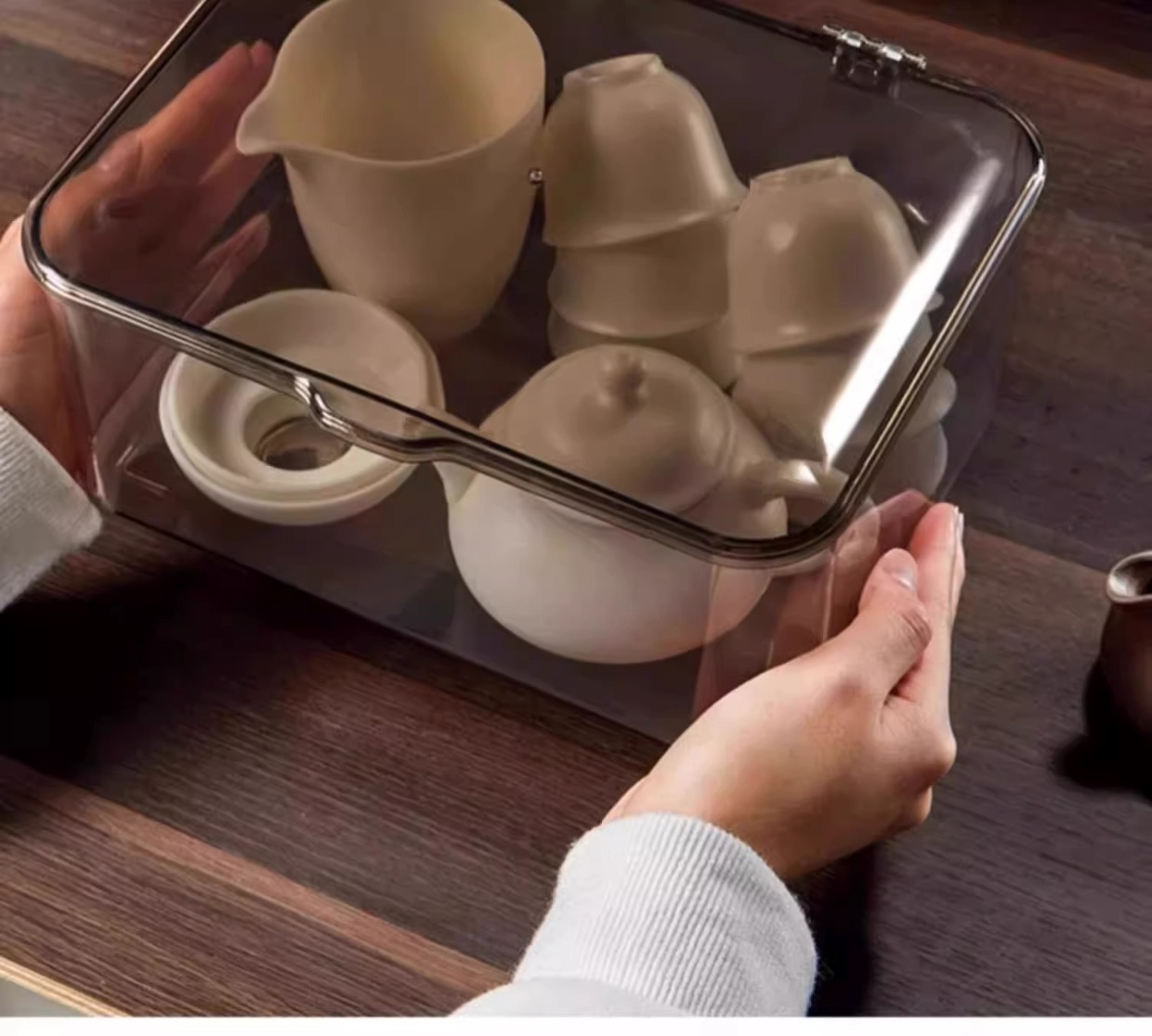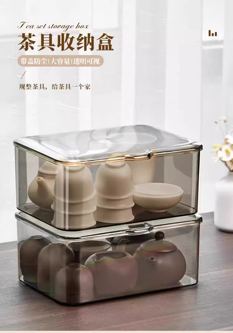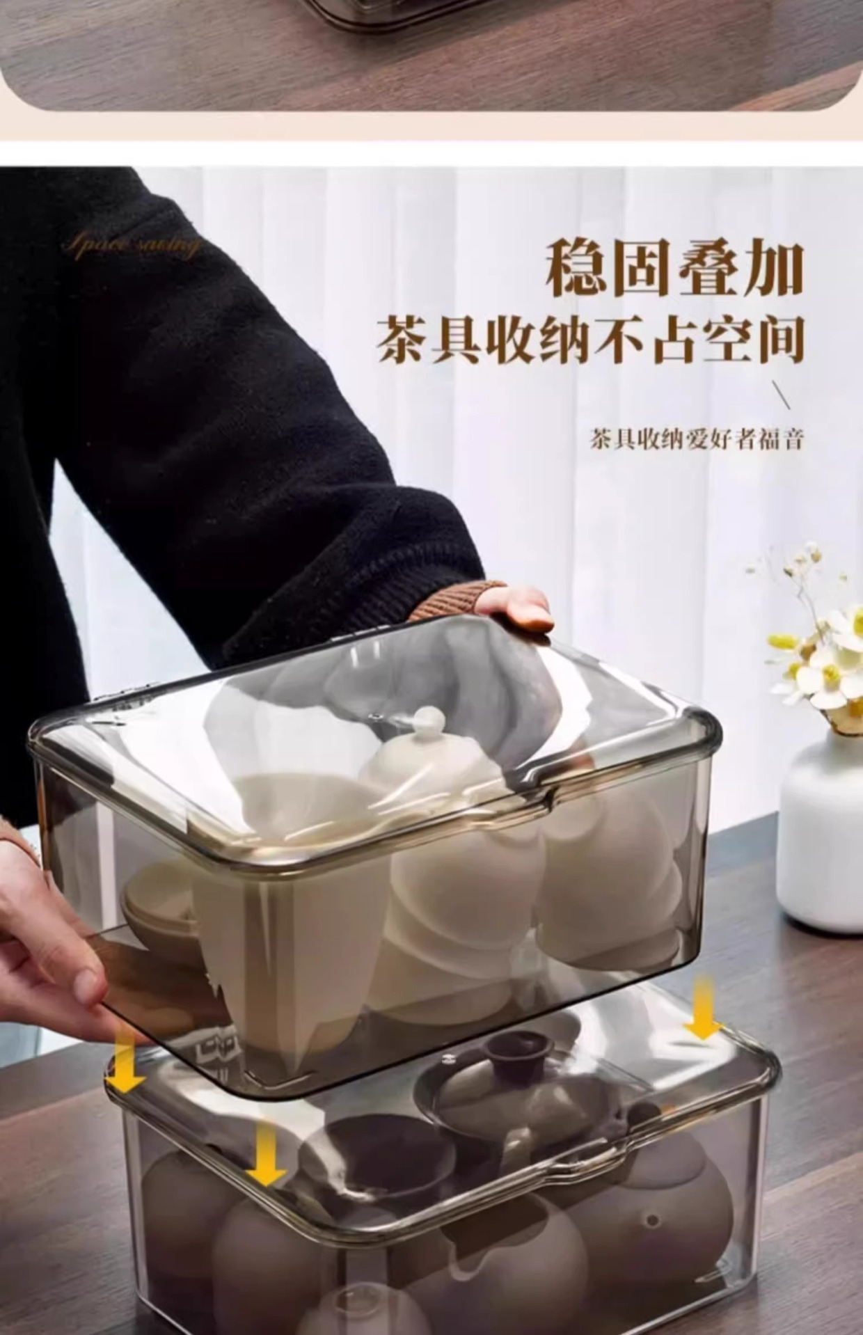 茶具收纳盒带盖防尘透明茶几桌面茶叶茶杯整理存放功夫茶壶置物架