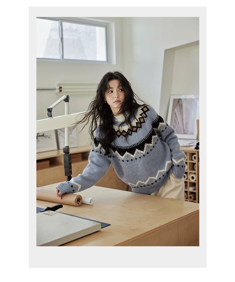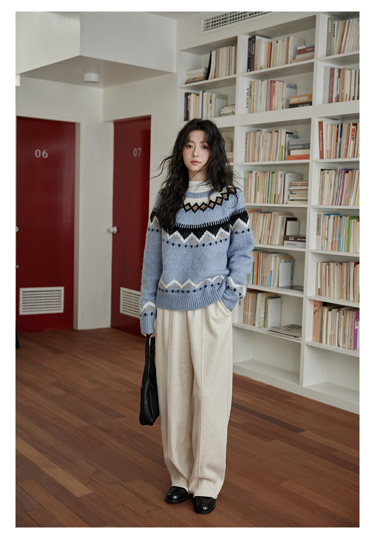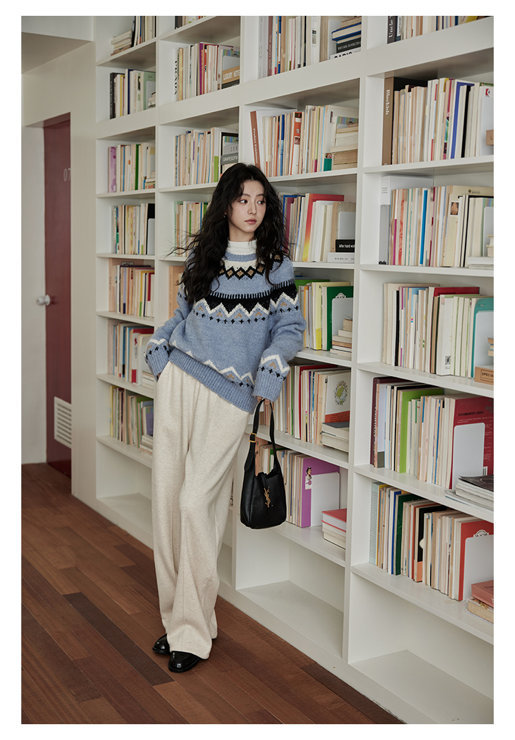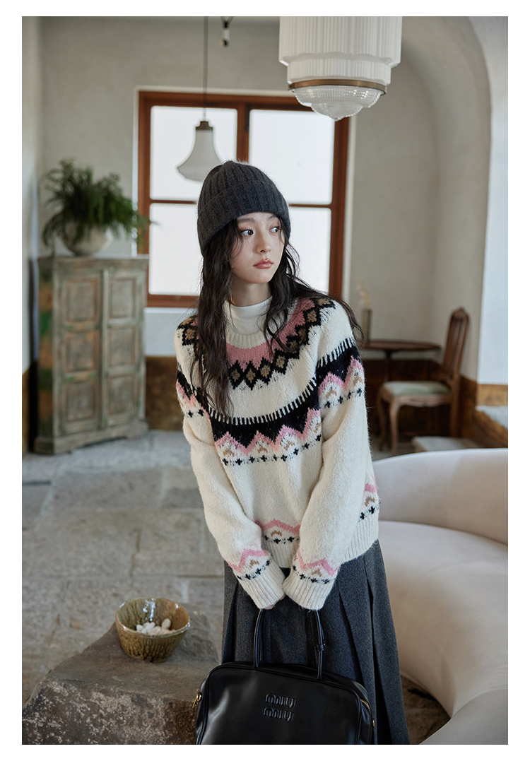 秋冬圆领时尚针织衫复古洋气小众慵懒风宽松软糯毛衣
