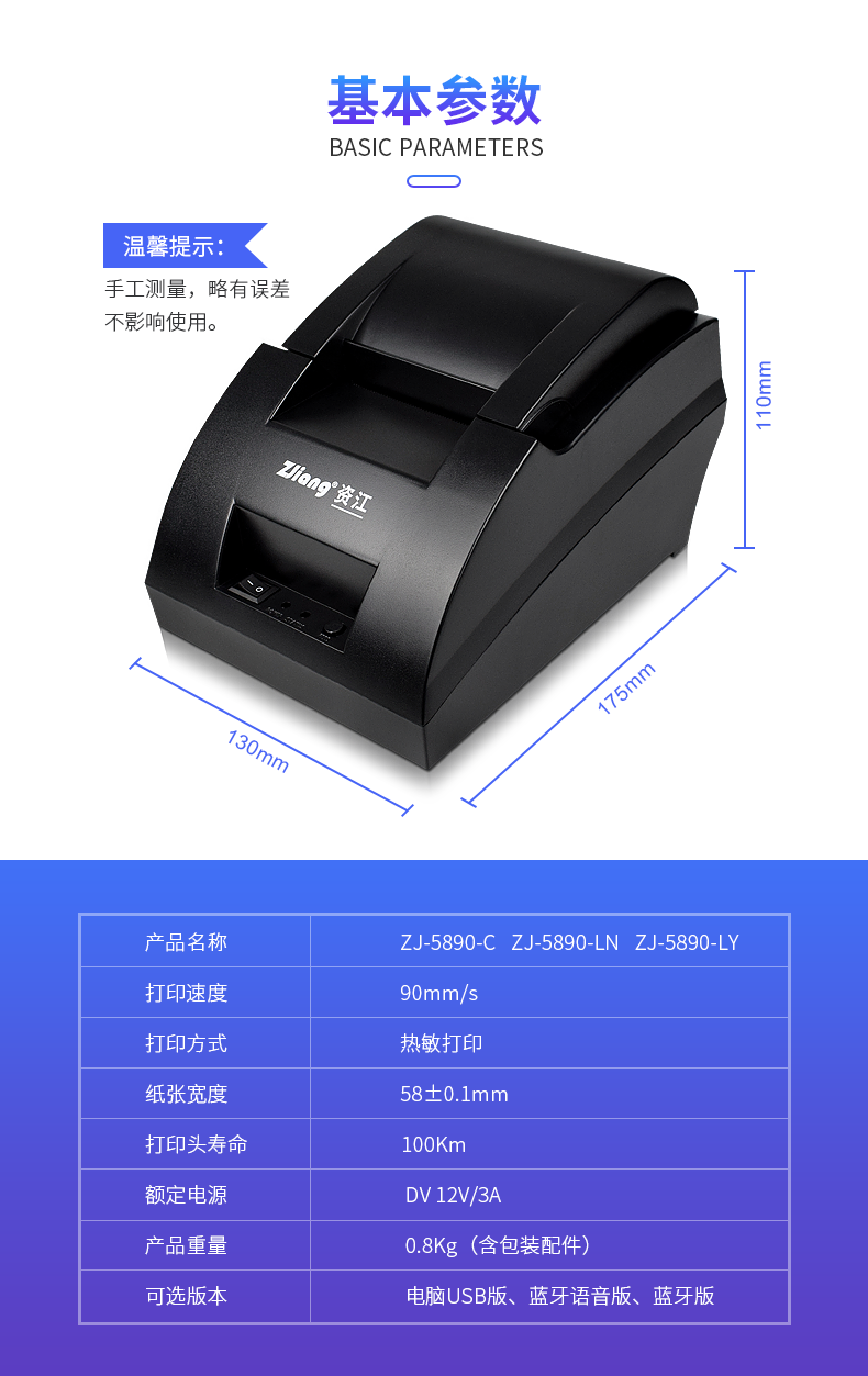 资江5890C美团饿了么外卖自动接单蓝牙语音收银小票机打印机热敏