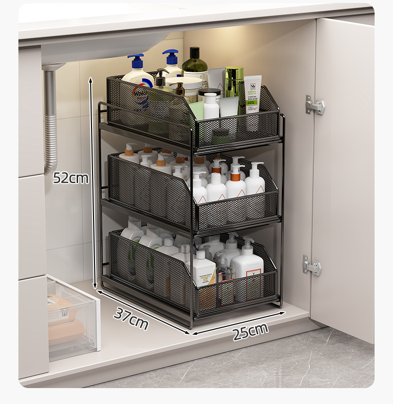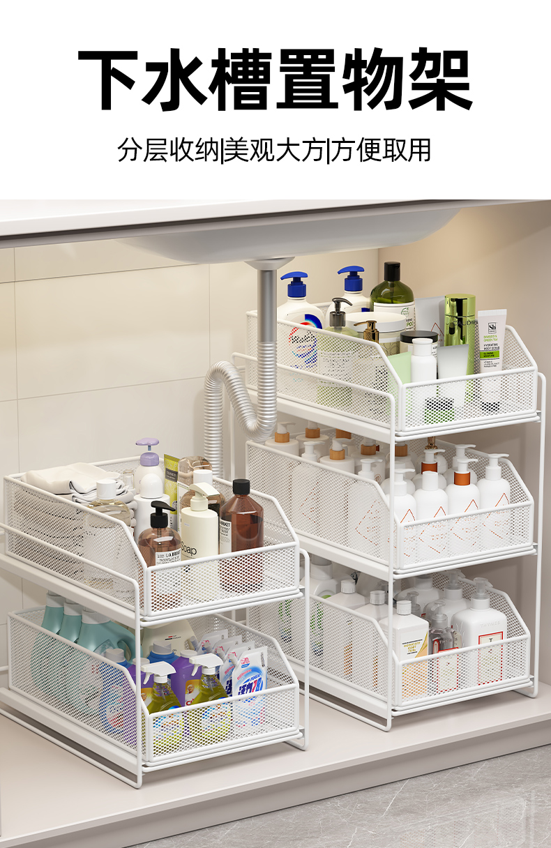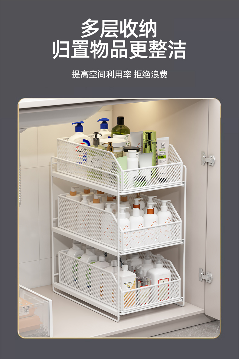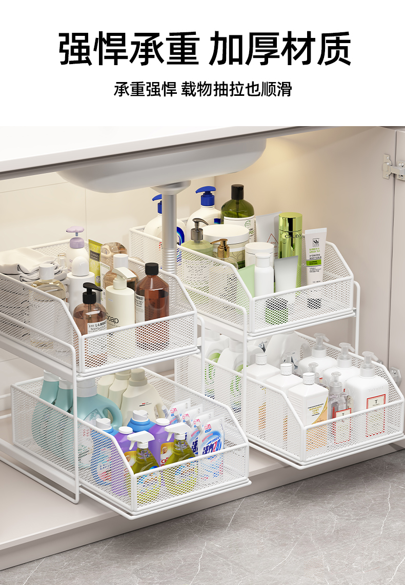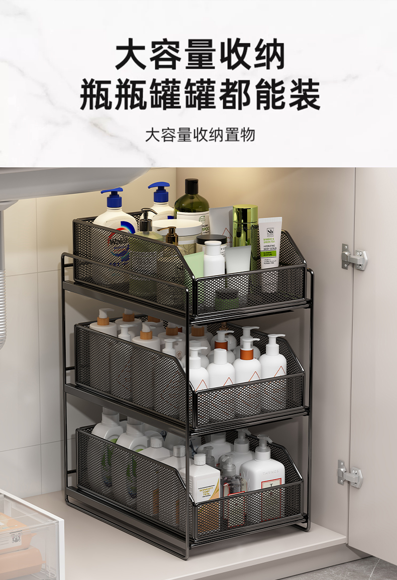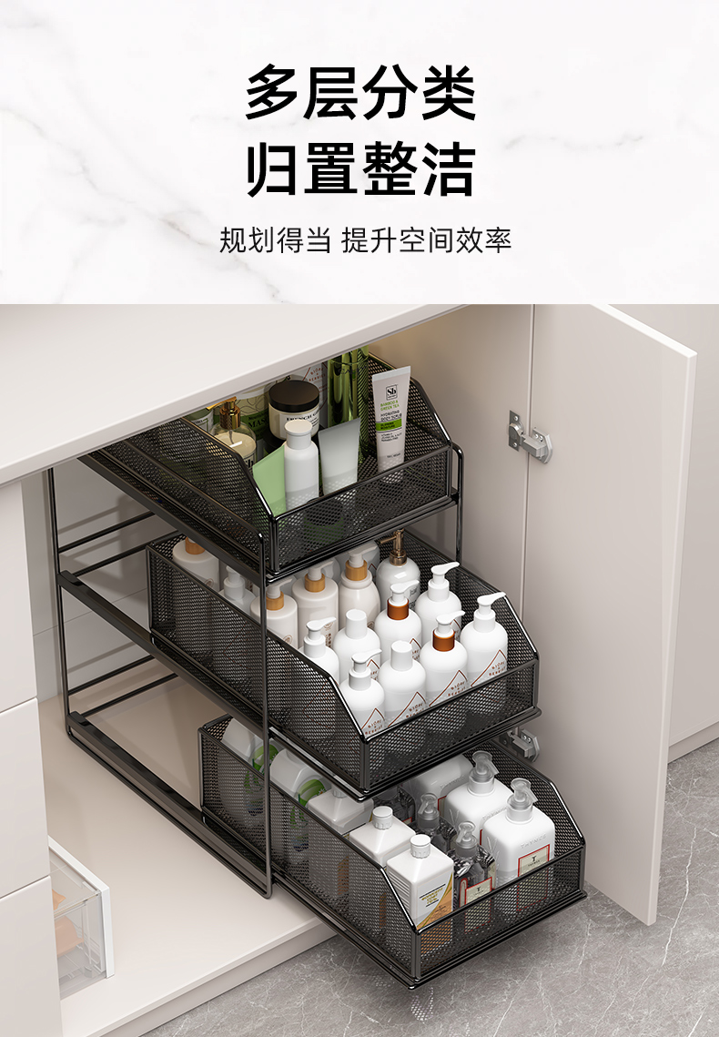 下水槽置物架抽拉式浴室柜下收纳盒多层卫生间洗手台下拉篮分层架