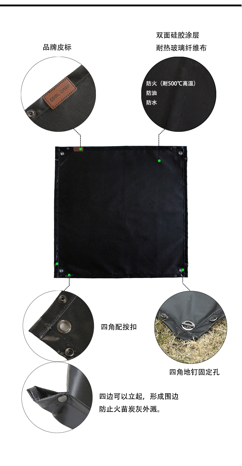 COOLCAMP户外露营防火垫耐高温硅胶隔热垫柴火炉烧烤架垫防火地布