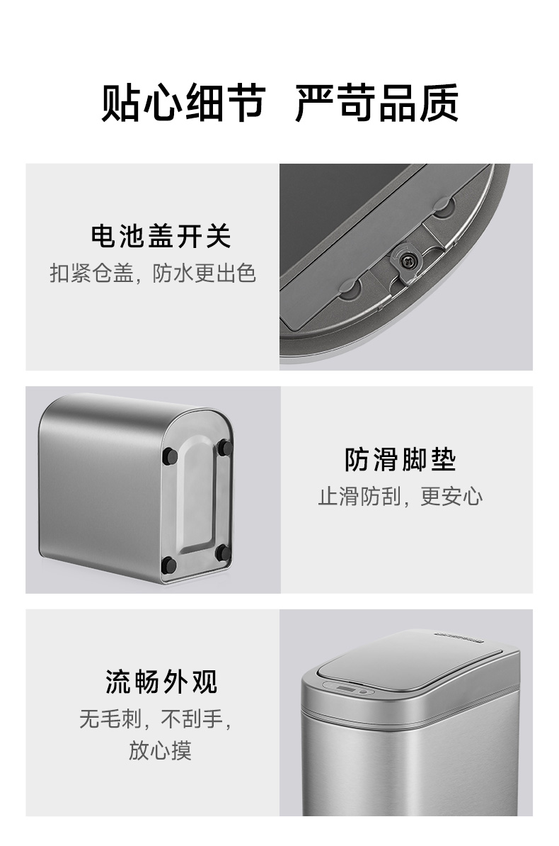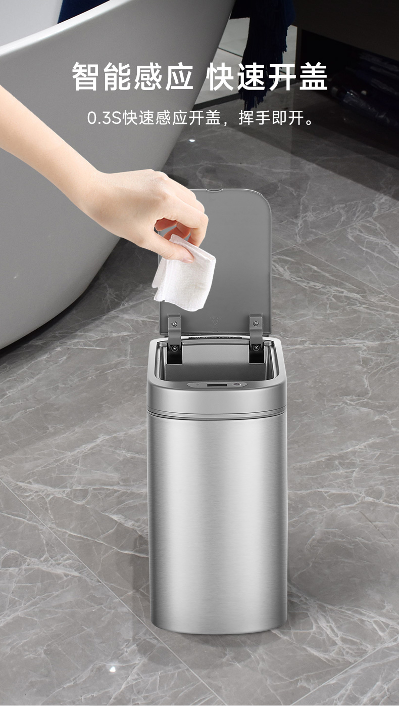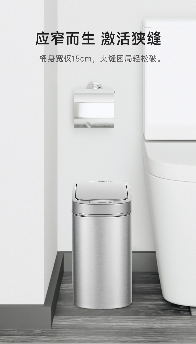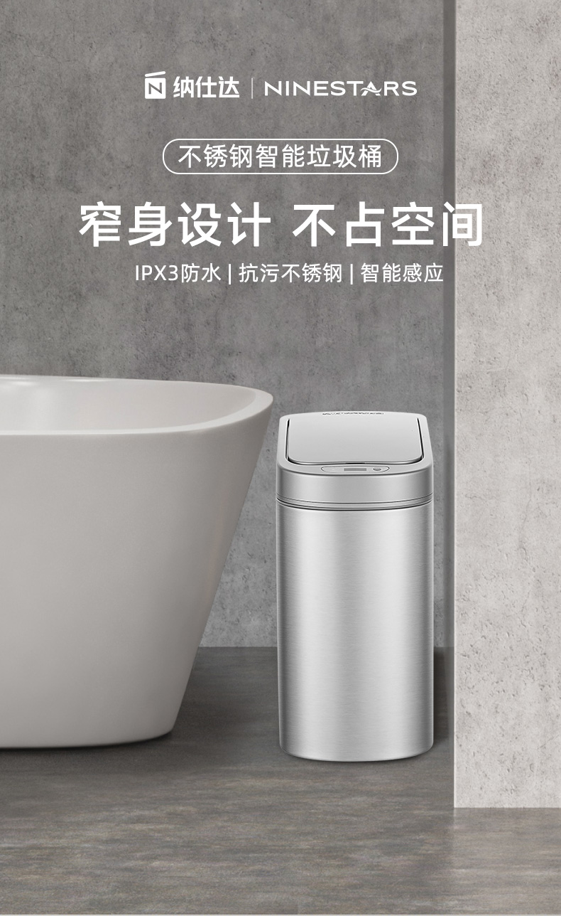 NST/纳仕达智能感应不锈钢垃圾桶家用带盖厨房卫生间卧室厕所防水
