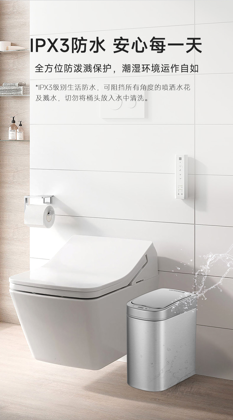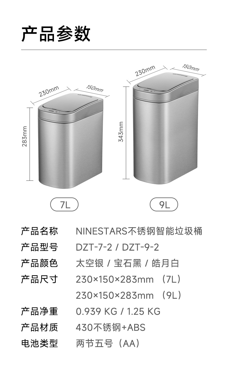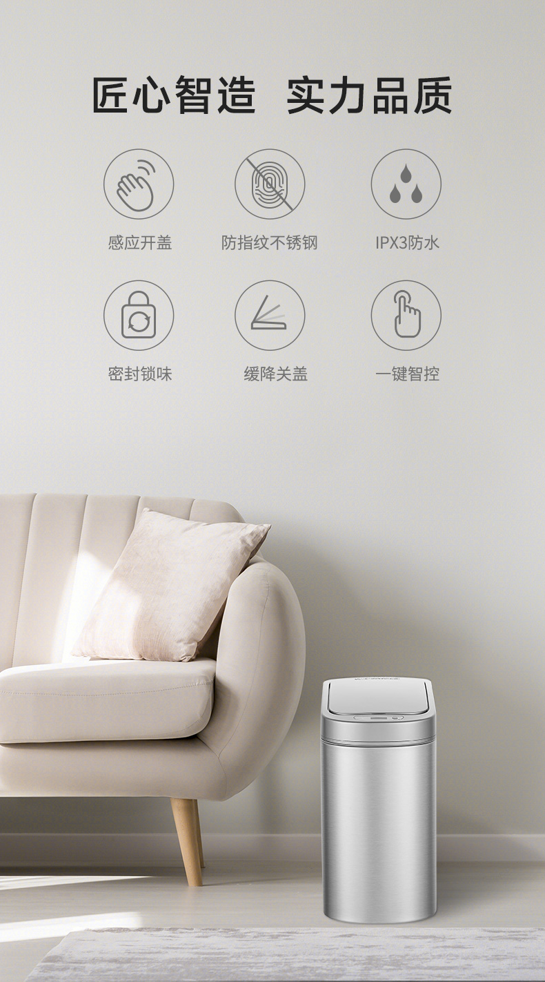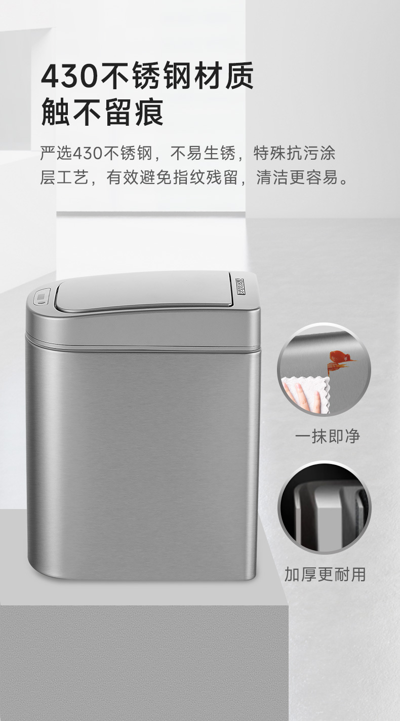 NST/纳仕达智能感应不锈钢垃圾桶家用带盖厨房卫生间卧室厕所防水