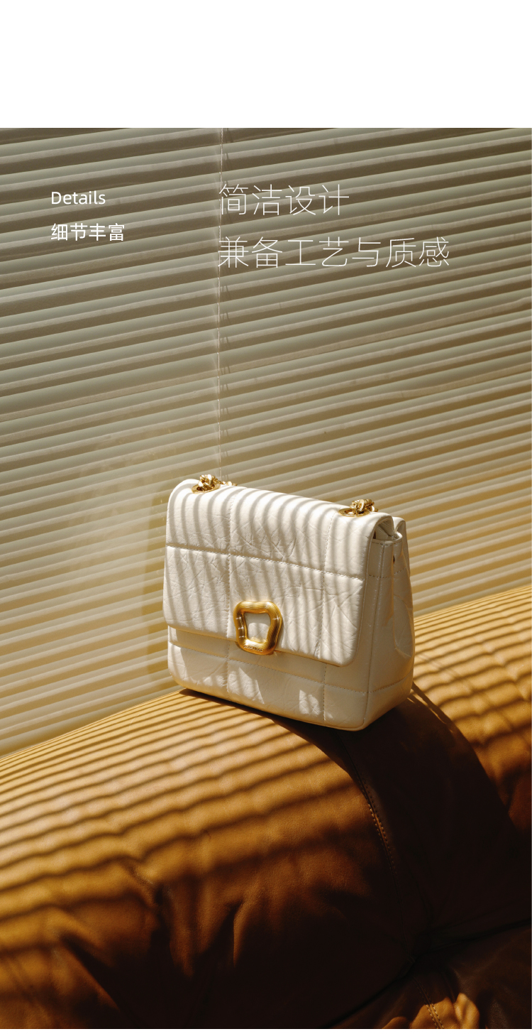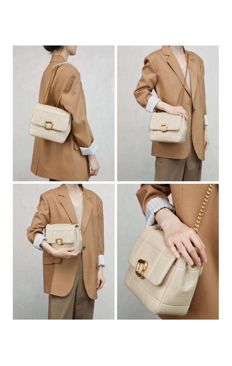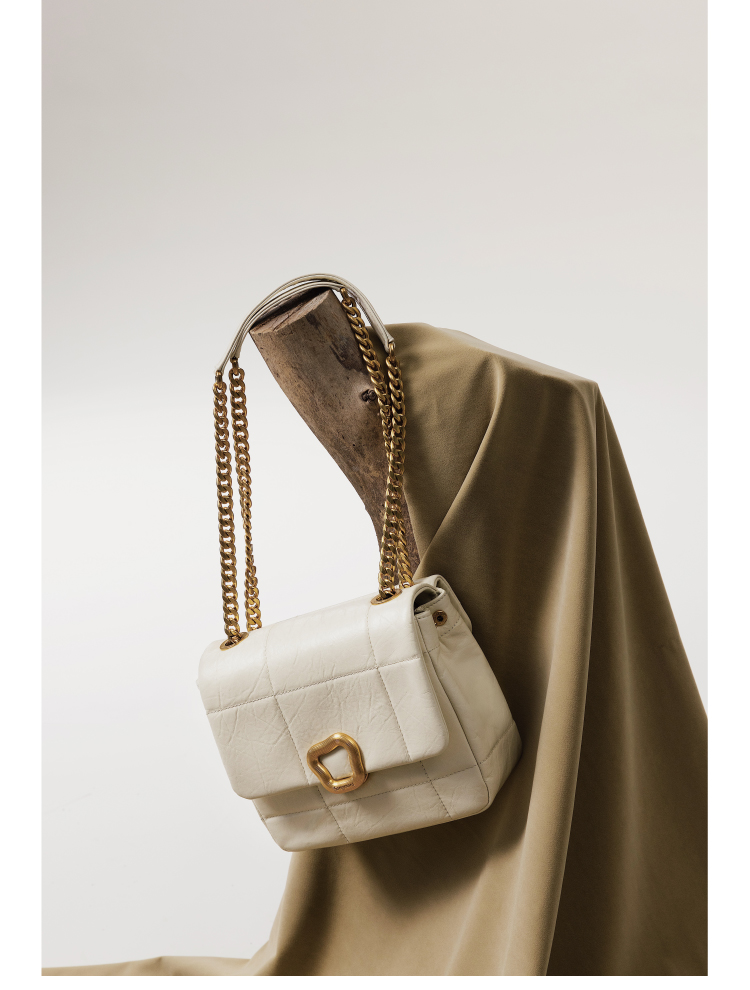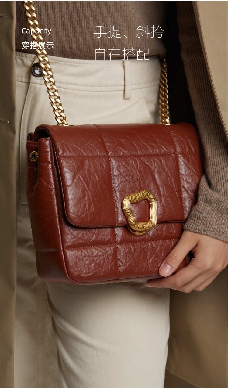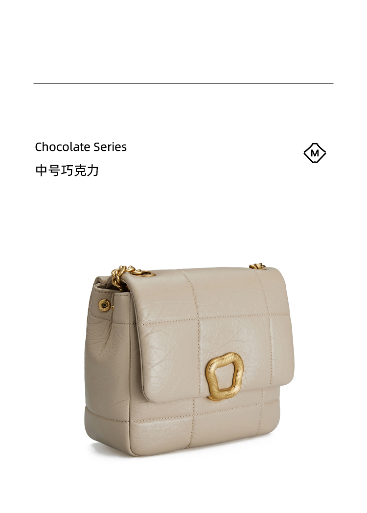 Songmont山下有松中号巧克力包系列云吞锁扣头层牛皮链条小方包
