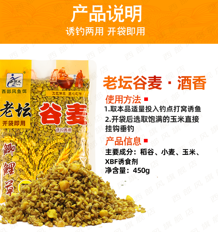西部风老坛谷麦玉米谷子五谷打窝钓饵鲫鱼鲤水库钓鱼窝料合川饵料
