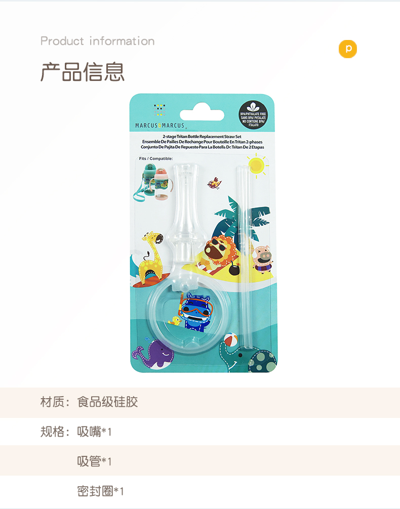 marcus马库狮吸管杯Tritan原装配件儿童水杯密封圈吸嘴吸管配件