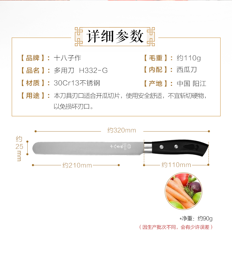 十八子作水果刀 家用厨房切西瓜专用长刀具不锈钢菜刀旗舰店阳江