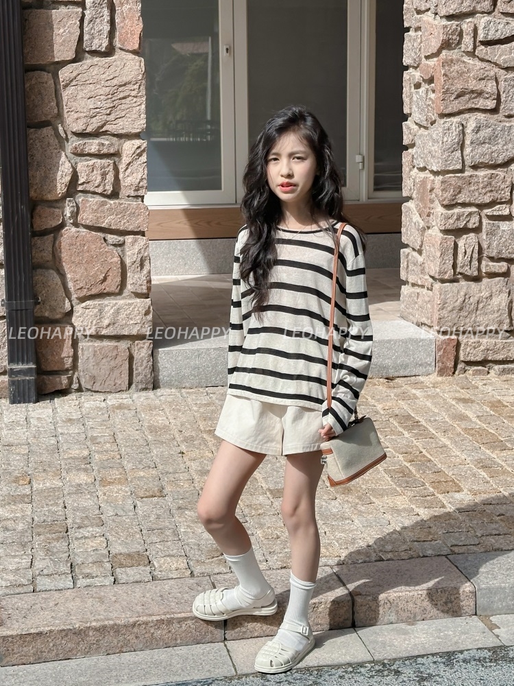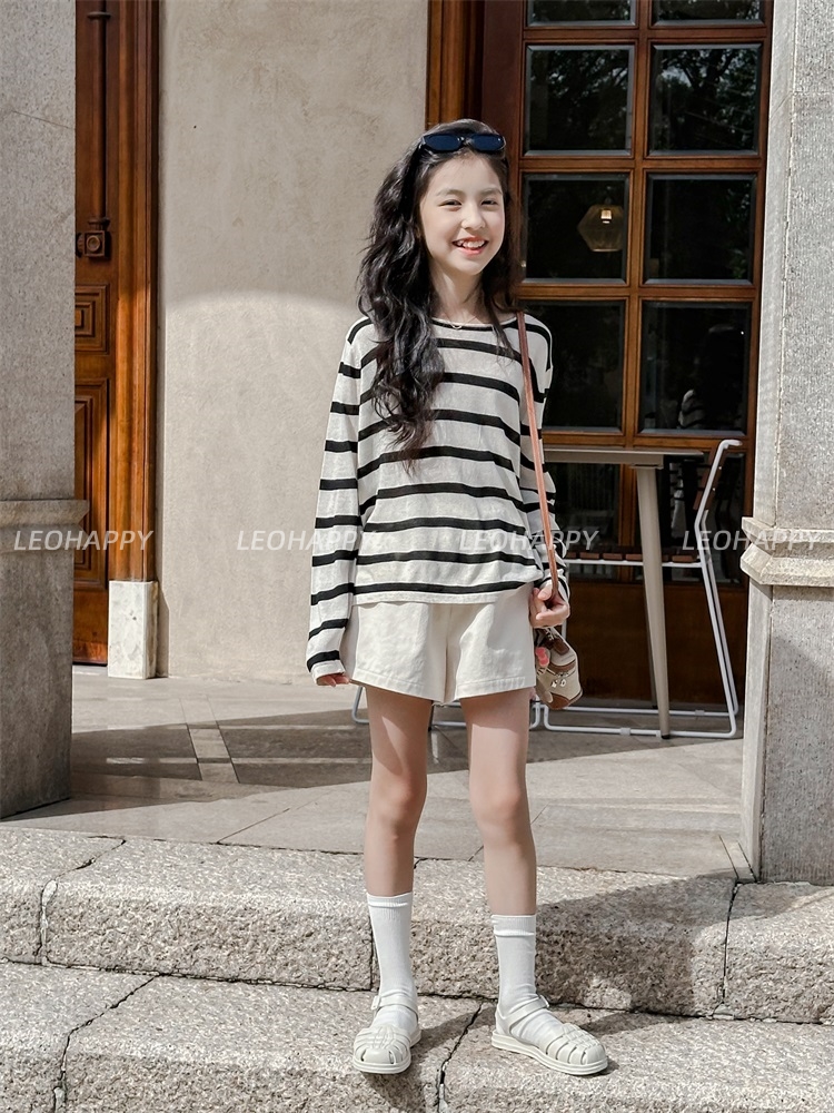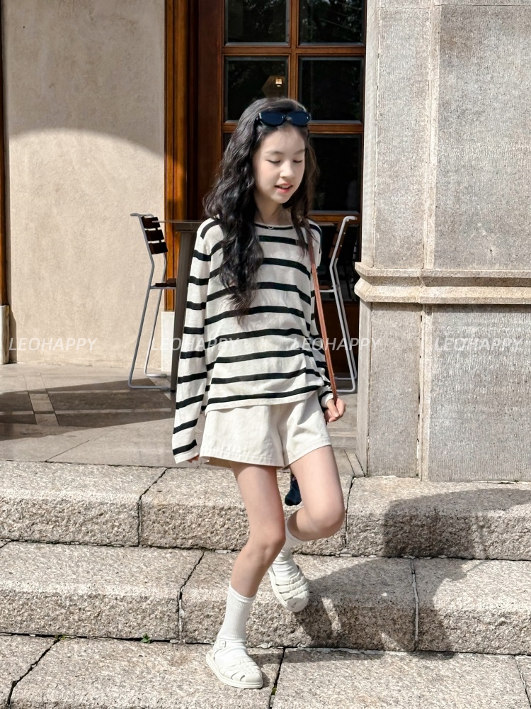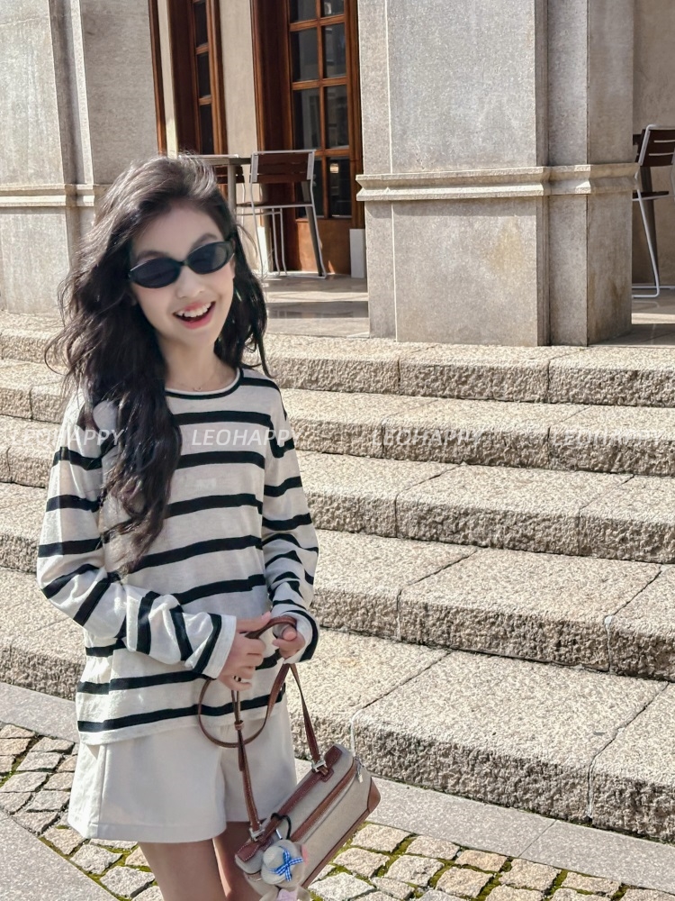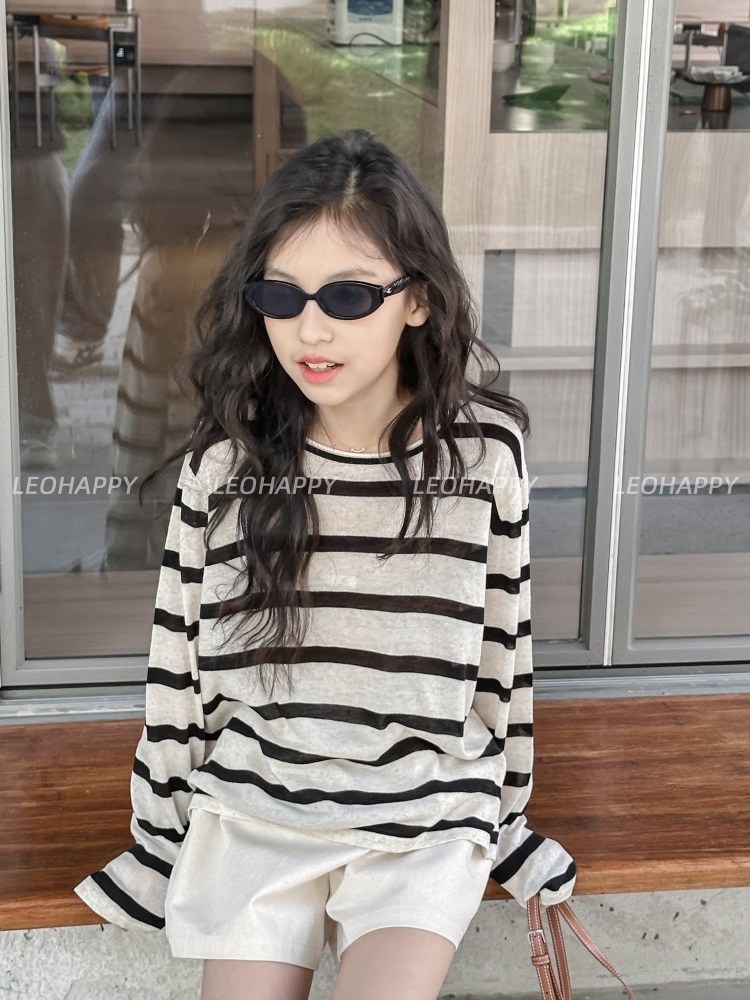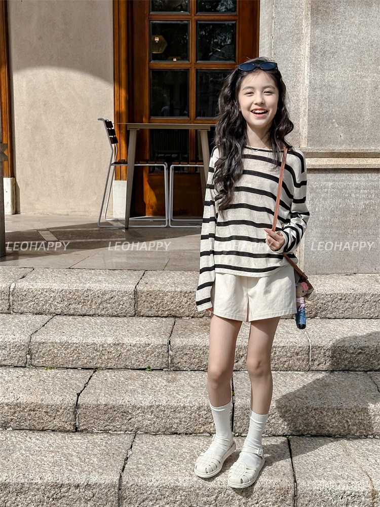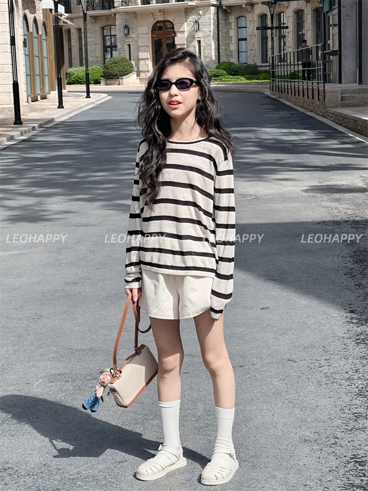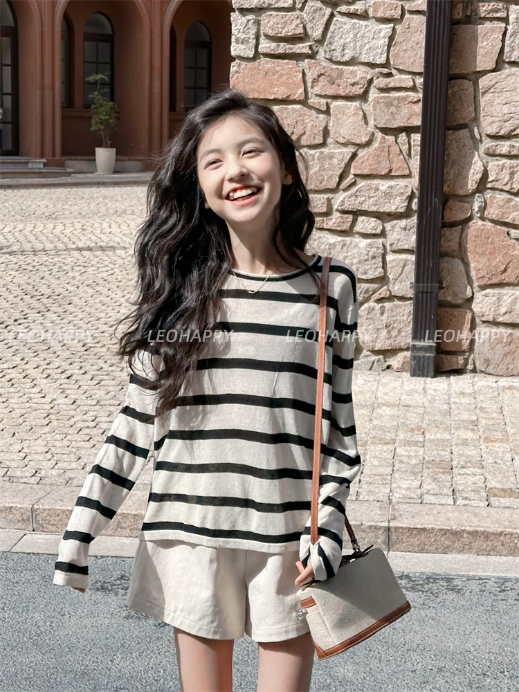 LEOHAPPY女童长袖t恤春夏款儿童防晒衫亚麻针织衫亲子莱赛尔上衣