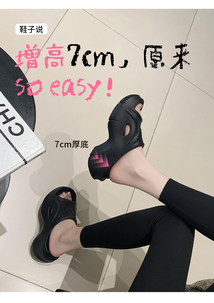 冲浪鲸鱼●7cm增高超厚底一字拖女夏季踩屎感百搭拖鞋