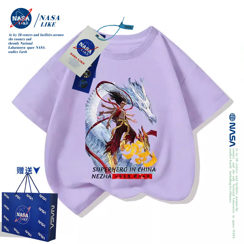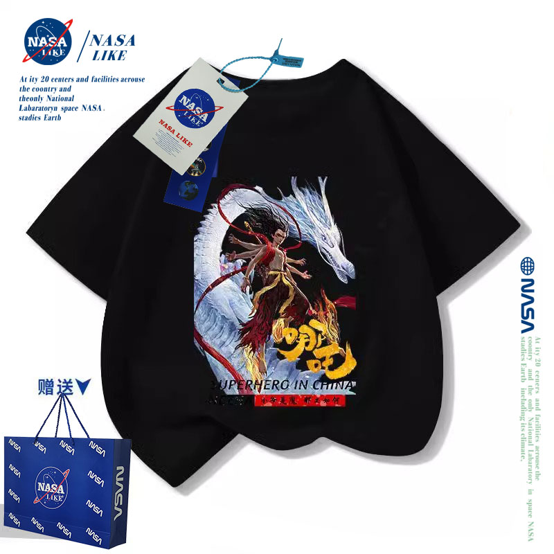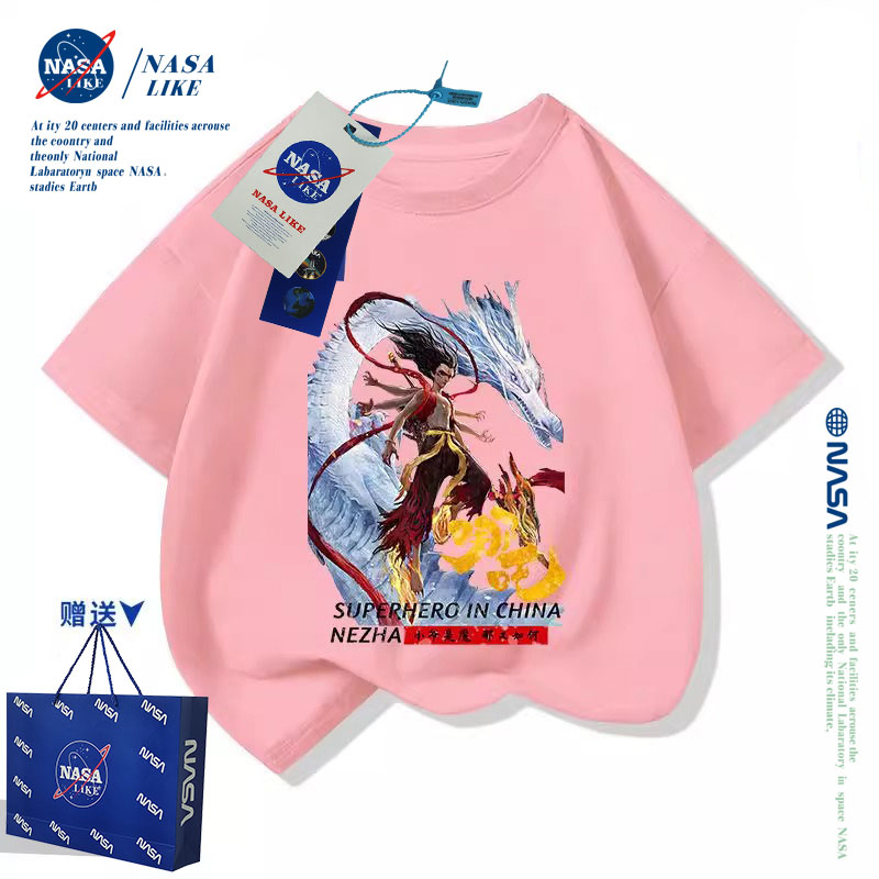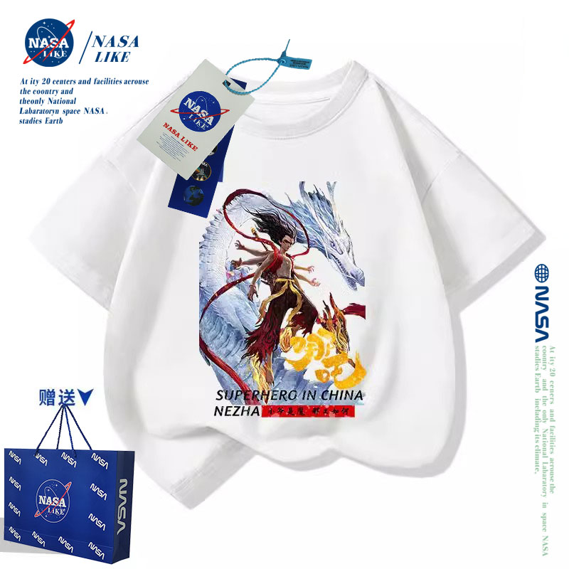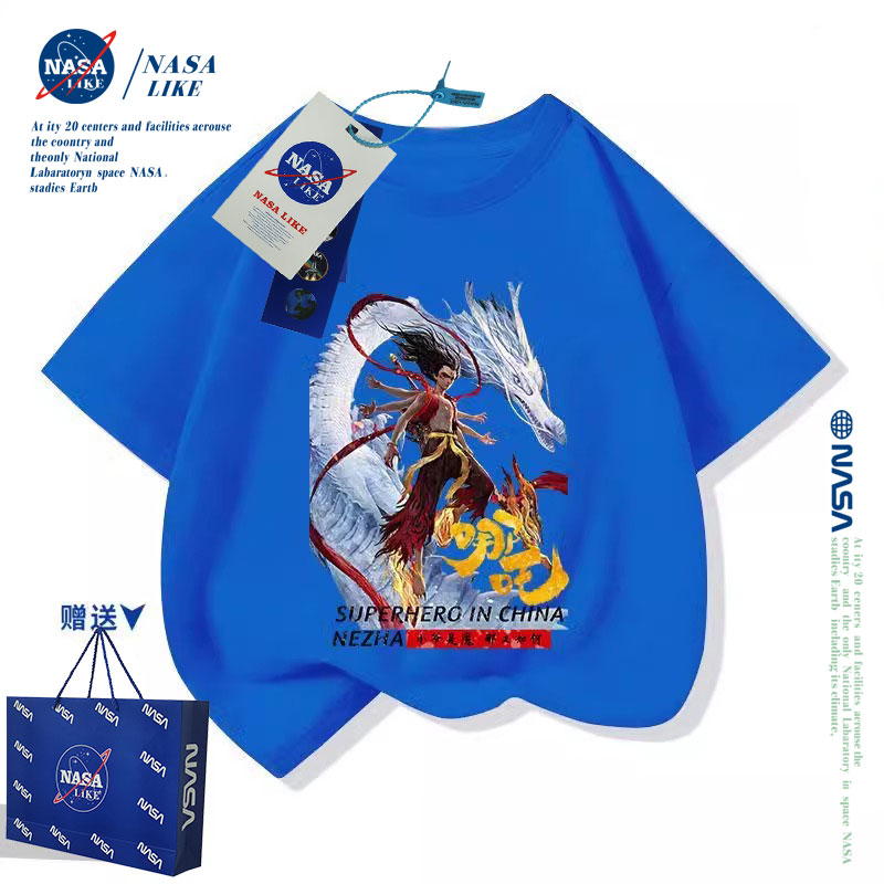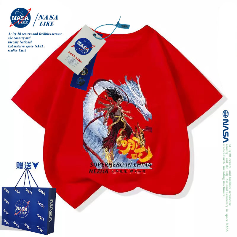 NASA联名哪吒男童女童纯棉短袖t恤国潮夏季爆款亲子休闲半袖上衣t