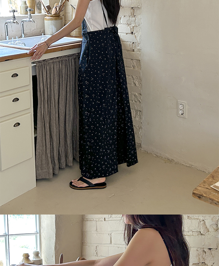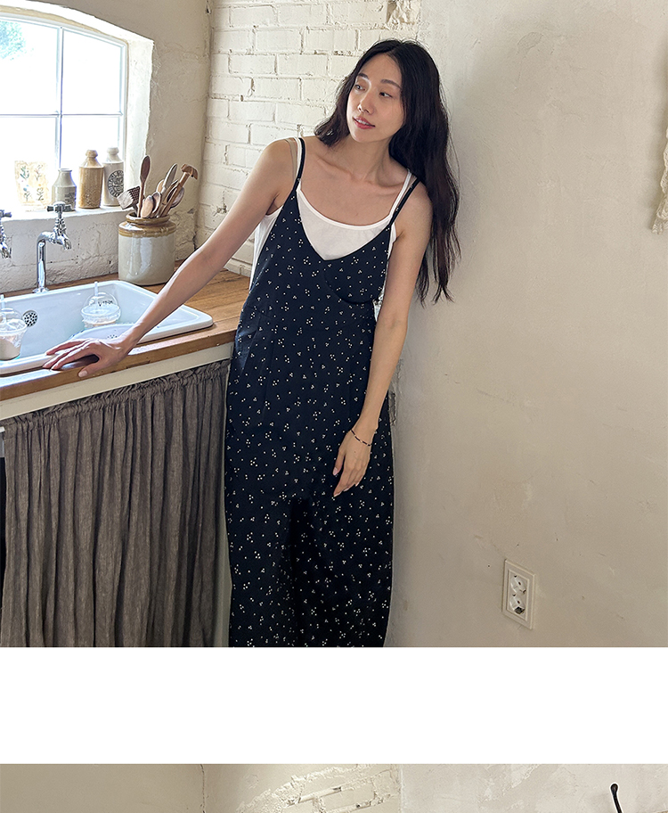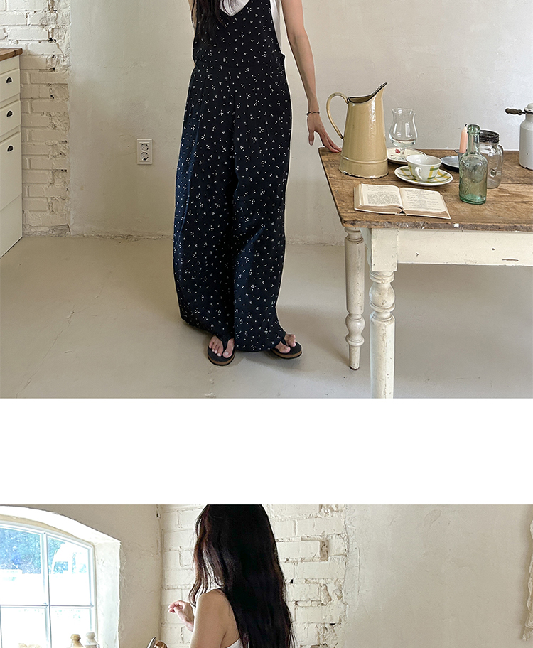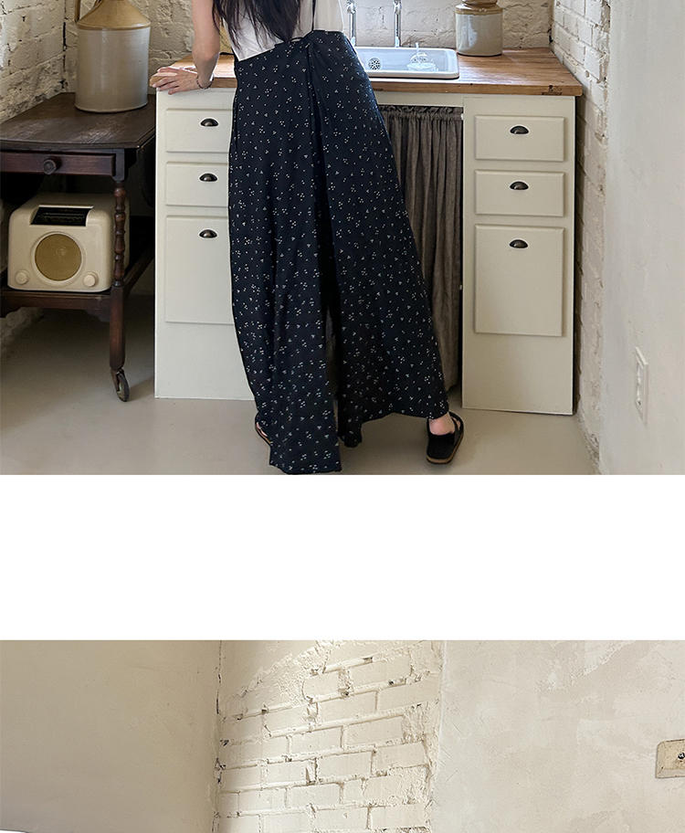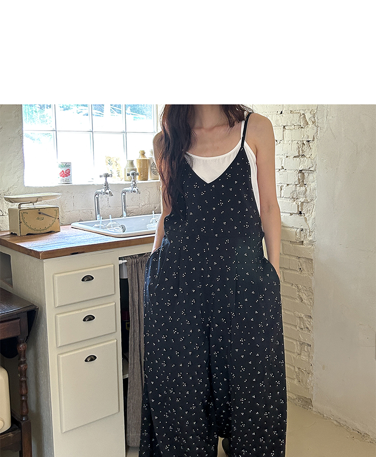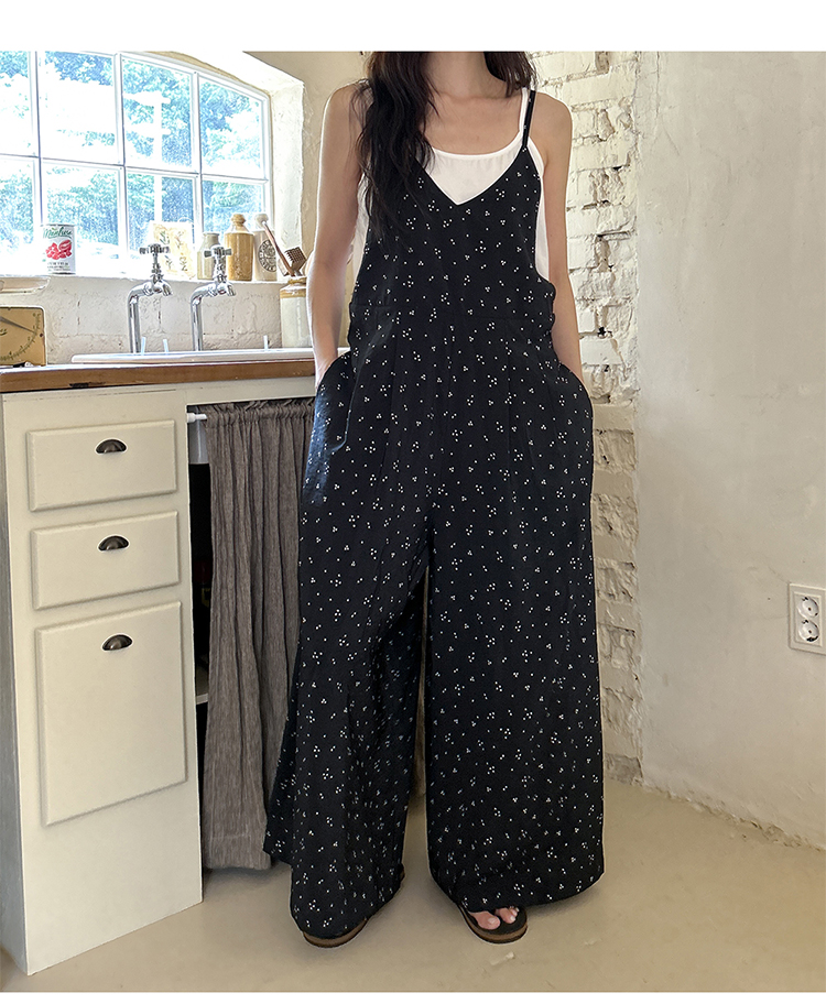 SYLP穗伊 凉快舒适 小花朵休闲系带连身裤v领长款阔腿裙裤连体裤