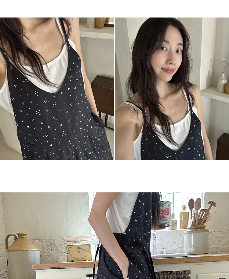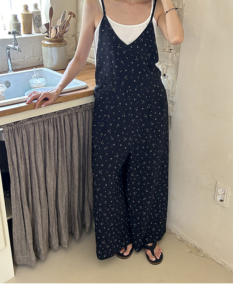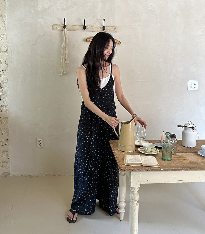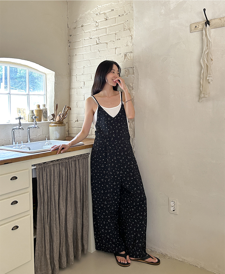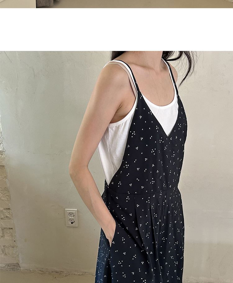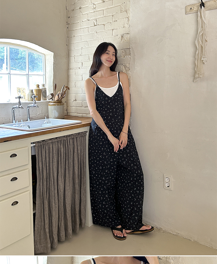 SYLP穗伊 凉快舒适 小花朵休闲系带连身裤v领长款阔腿裙裤连体裤