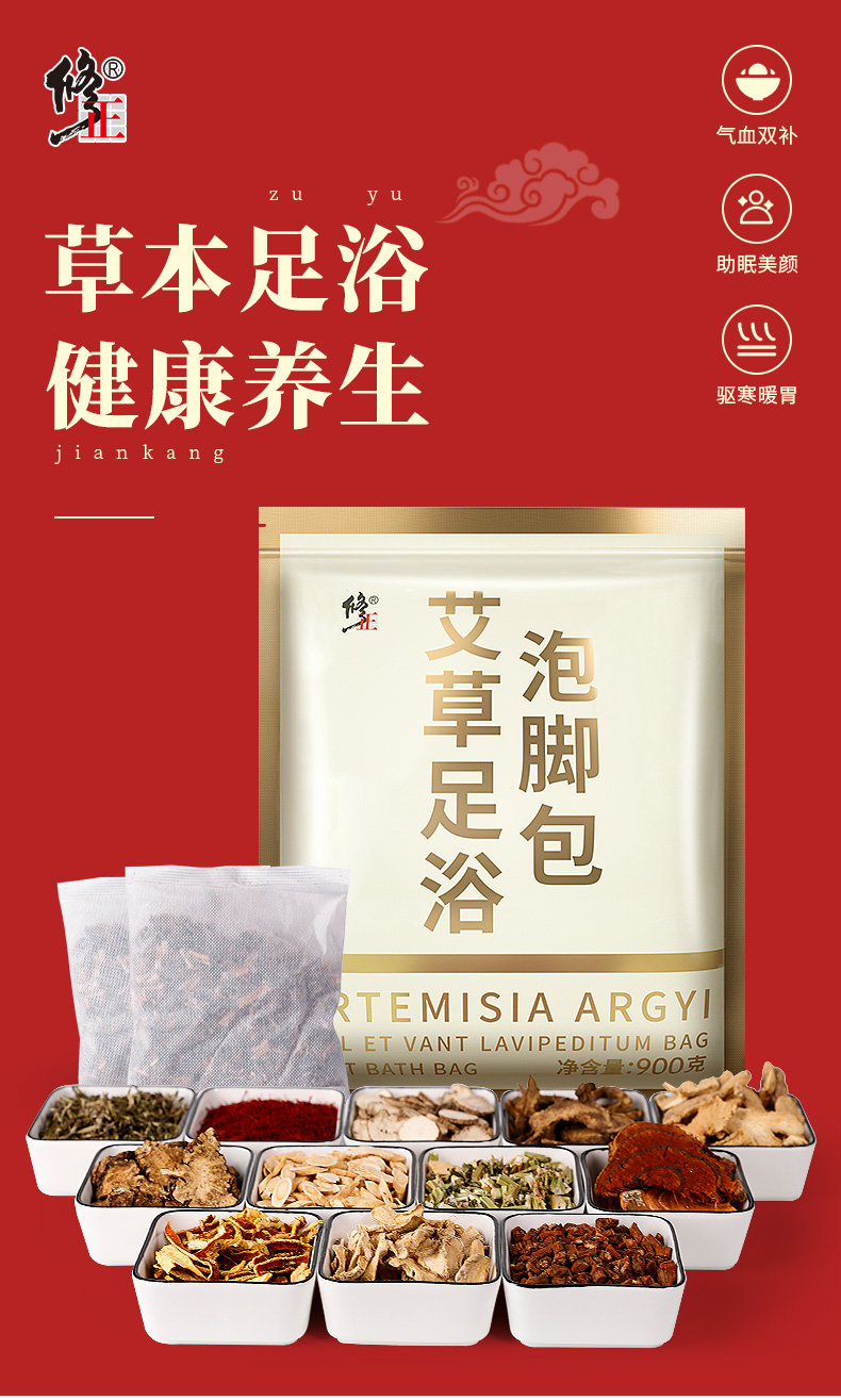 修正艾草艾叶藏红花泡脚中药男女生姜草本足浴粉包祛寒