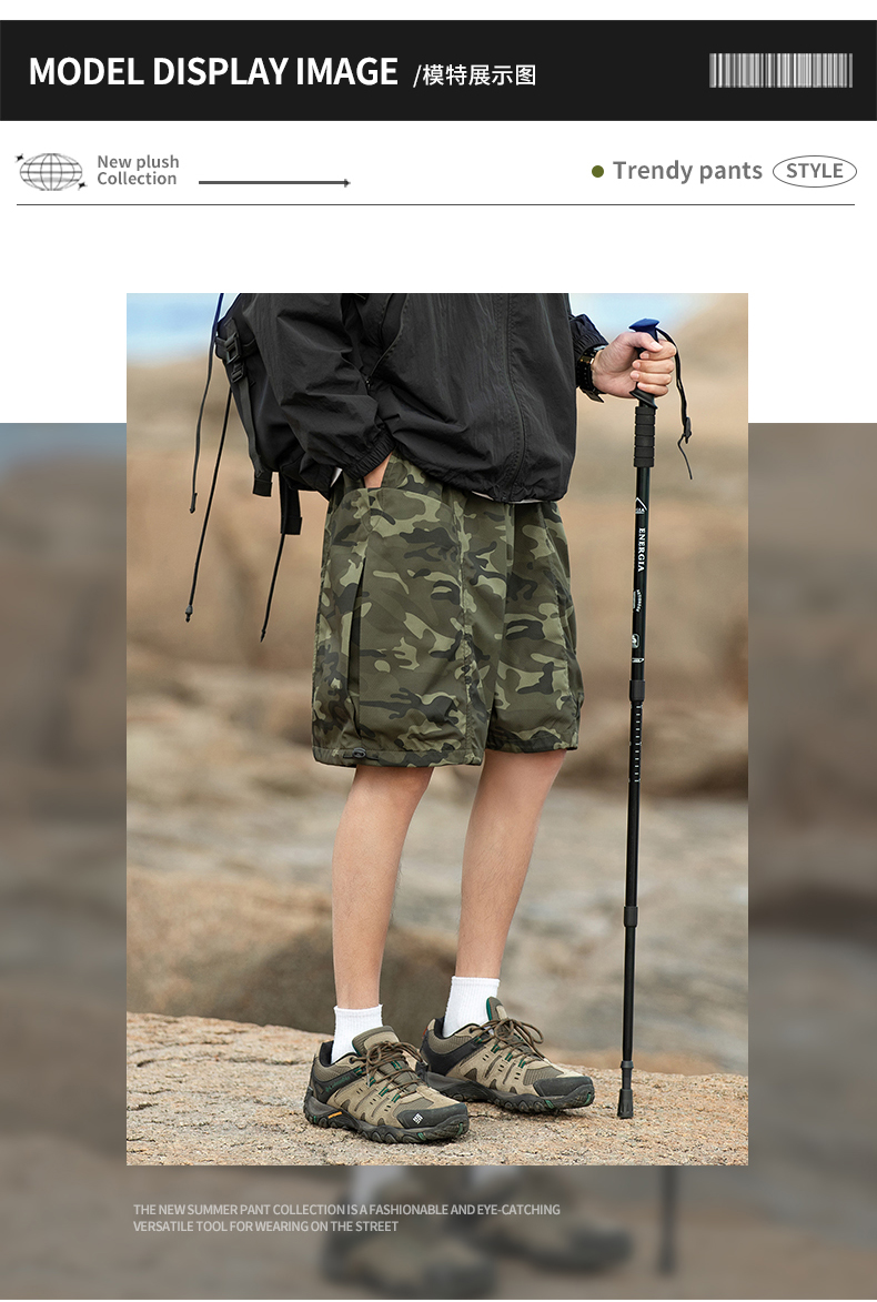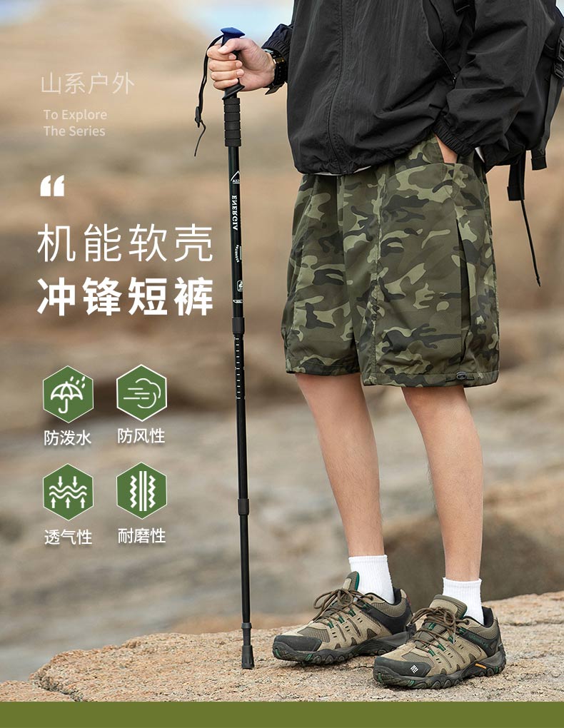 Wassup Shark夏季薄款迷彩工装短裤男机能软壳休闲宽松运动五分裤