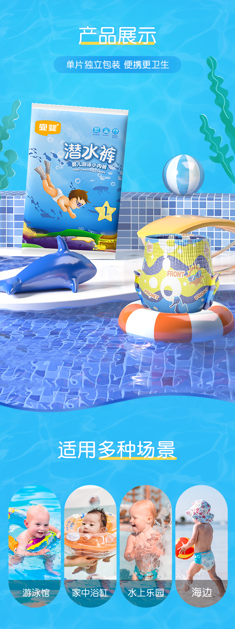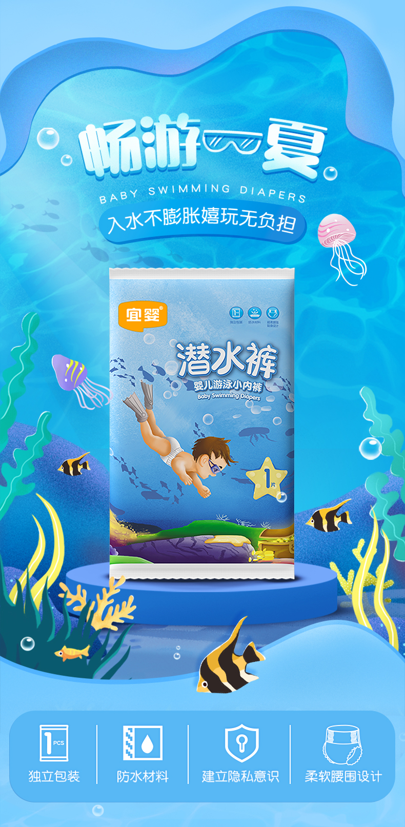 宜婴宝宝游泳纸尿裤超薄透气男女防水婴儿尿不湿游泳拉拉裤5片