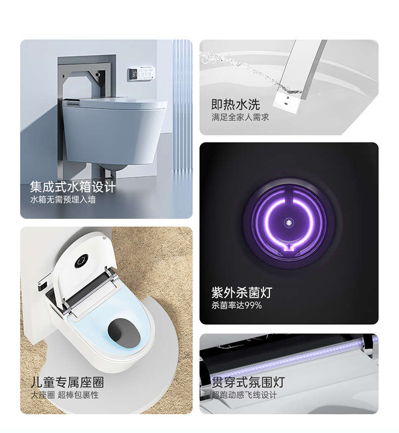 科卫适壁挂式智能马桶家用虹吸全自动带水箱悬浮一体式坐便器G2