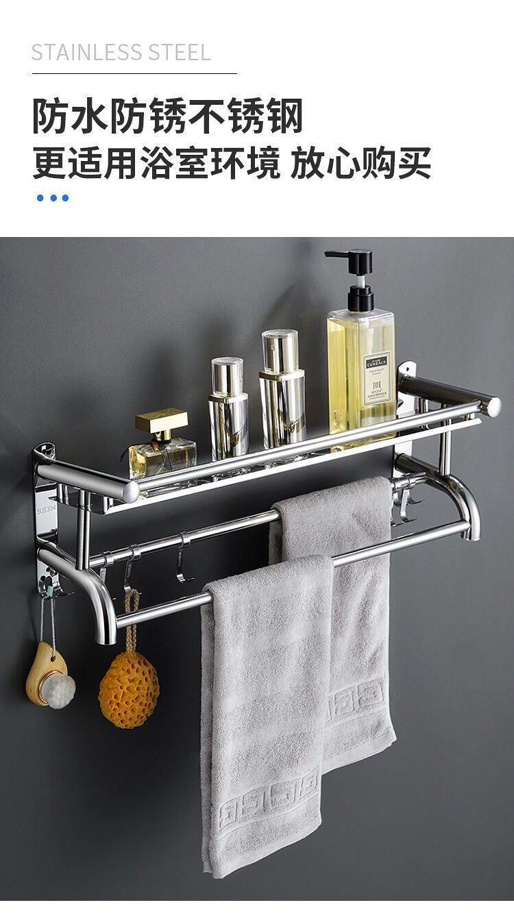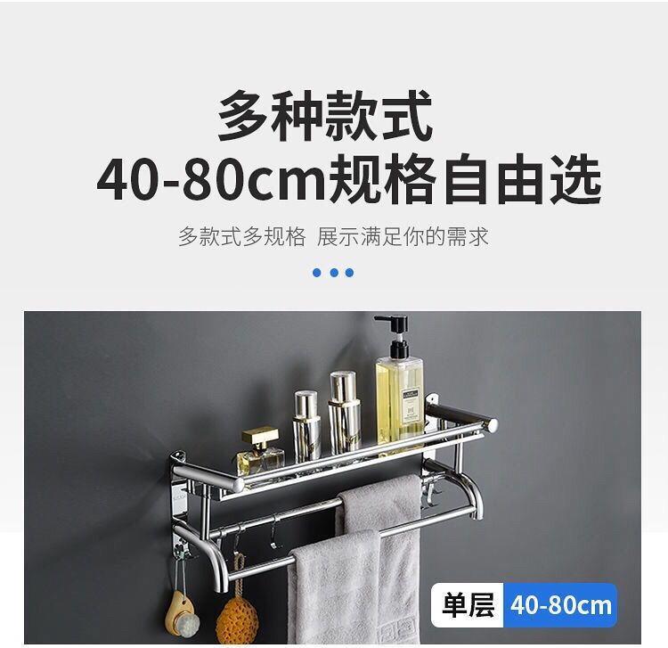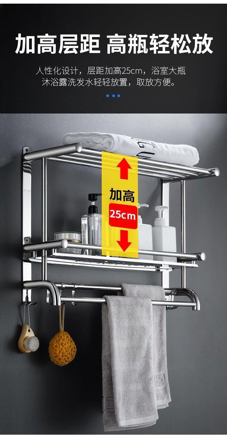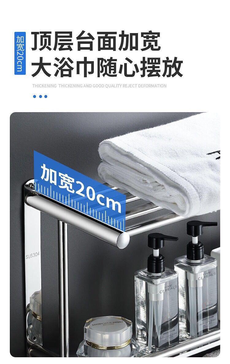 浴室304不绣钢架卫生间置物架毛巾架免打孔墙上置物架高档浴巾架